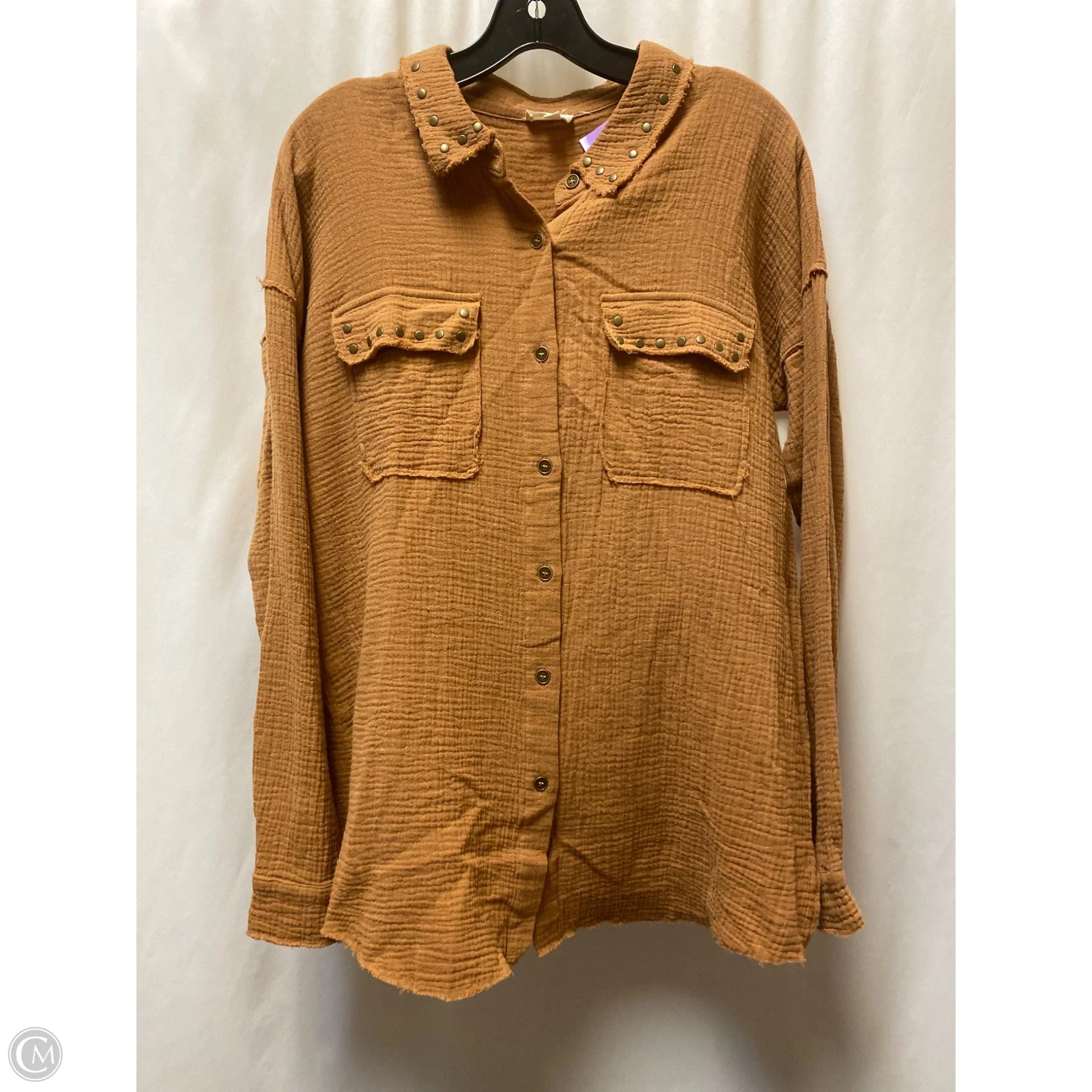 Top Long Sleeve By Hem & Thread In Brown, Size: L