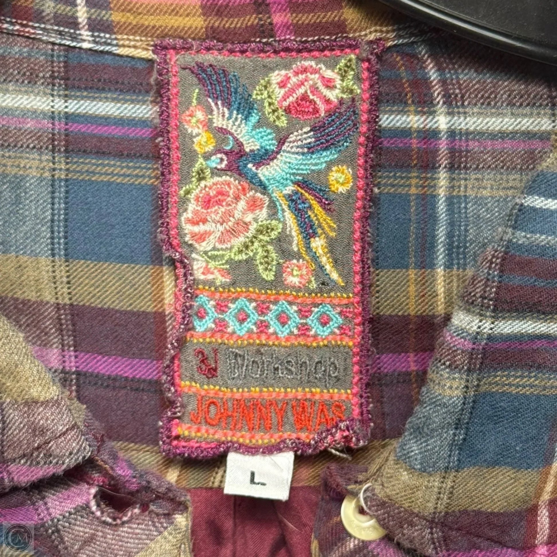 Lorie Silk Trim Embroidered Button Down Top By Johnny Was In Plaid Pattern, Size: L