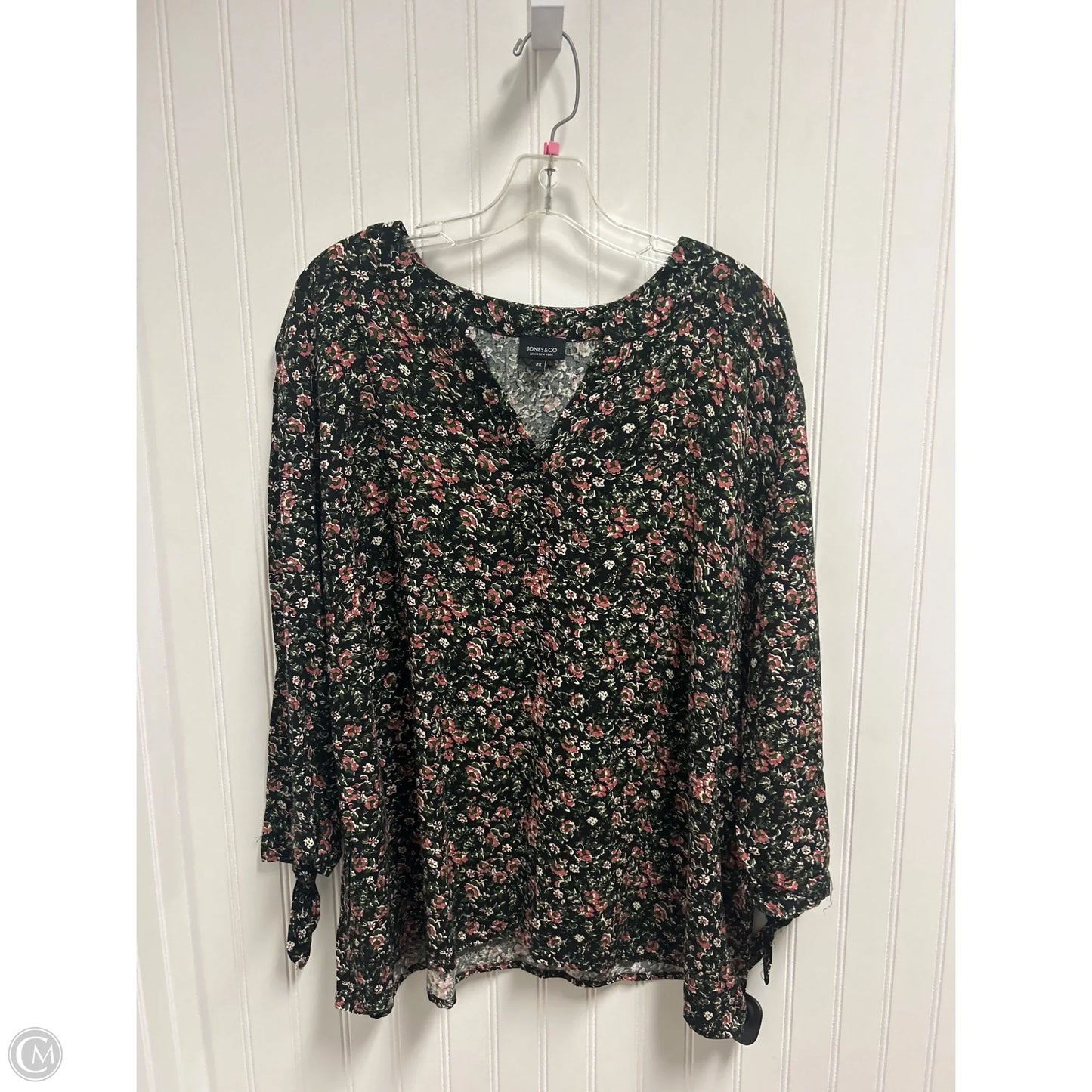Top Long Sleeve By Jones And Co In Black & Pink, Size: 2x