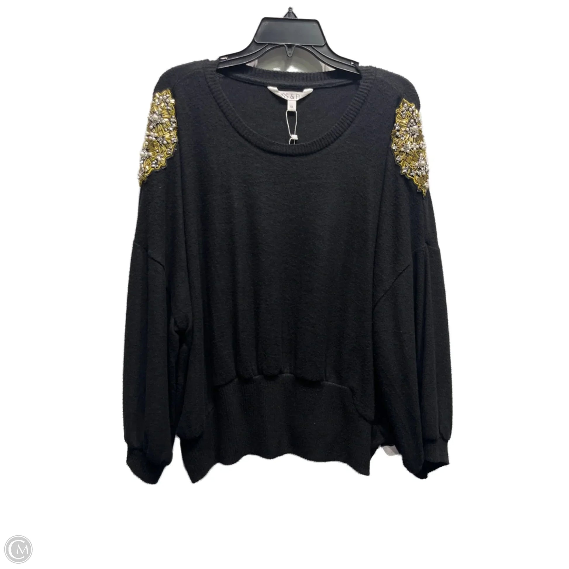 Top Long Sleeve By KISS & FLY In Black & Gold, Size: Xl