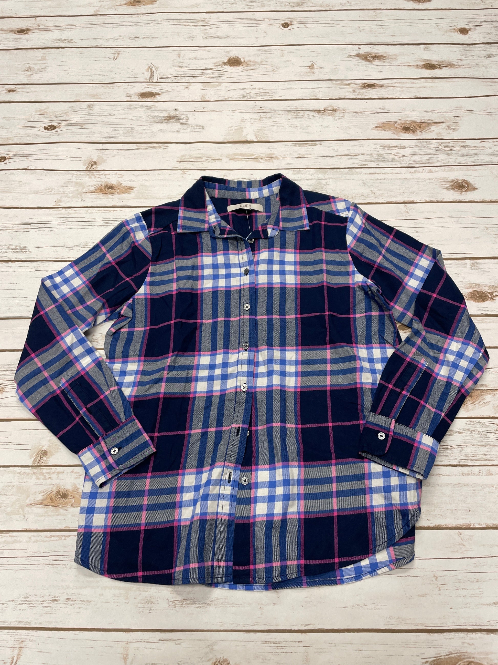 Top Long Sleeve By Loft In Plaid Pattern, Size: S