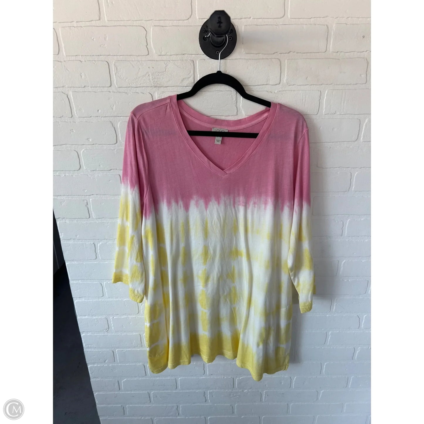 Top Long Sleeve By Logo In Pink & Yellow, Size: Xl