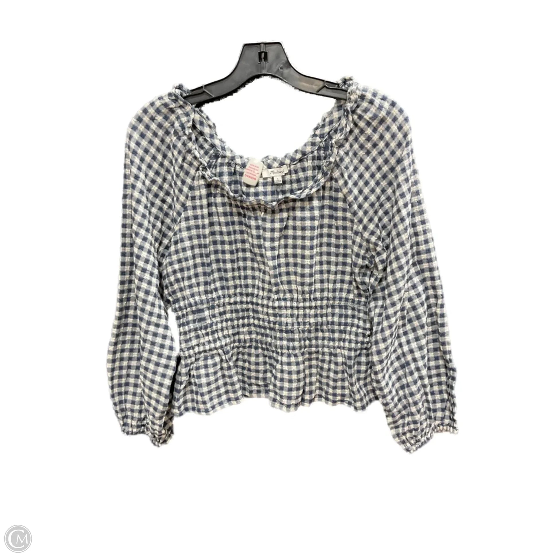 Top Long Sleeve By Madewell In Blue & Cream, Size: S