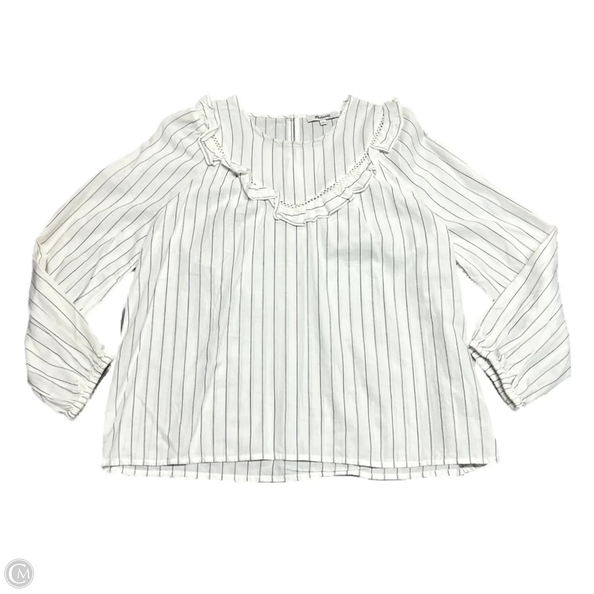 Top Long Sleeve By Madewell In Blue & Cream, Size: S
