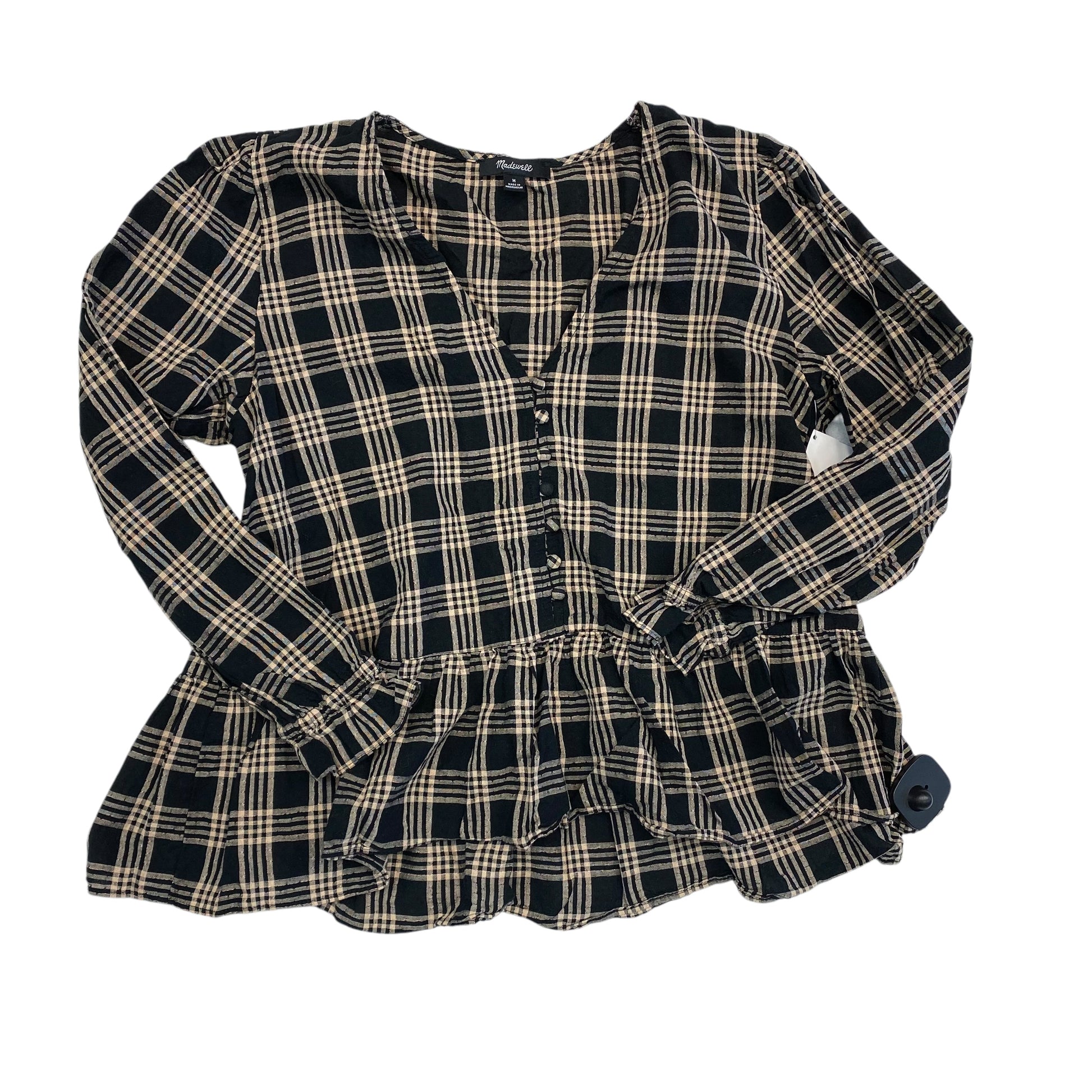 Top Long Sleeve By Madewell In Plaid Pattern, Size: M