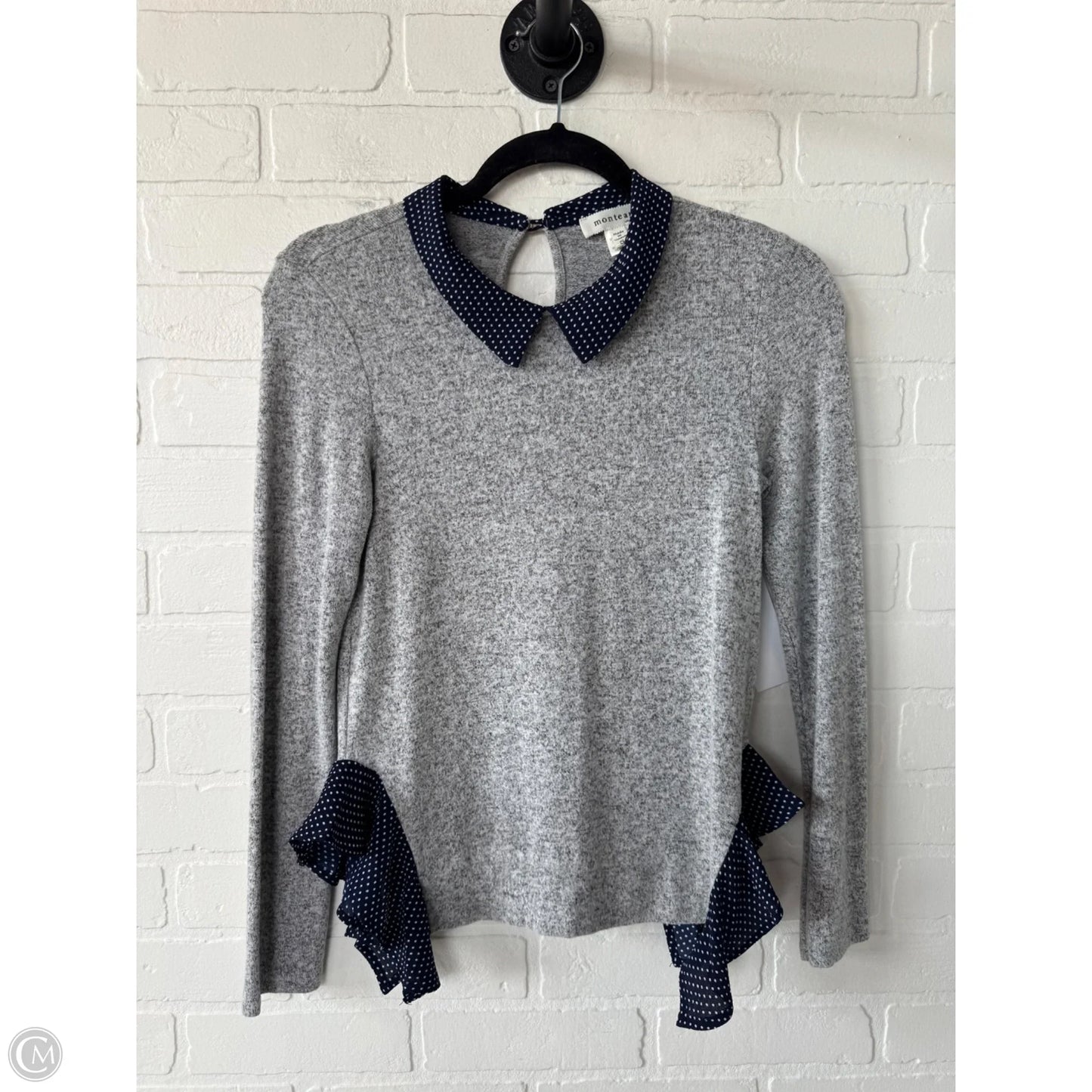 Get cozy in this chic blue & grey Monteau top. Size S, perfect for casual outings. You'll love the comfort & style!