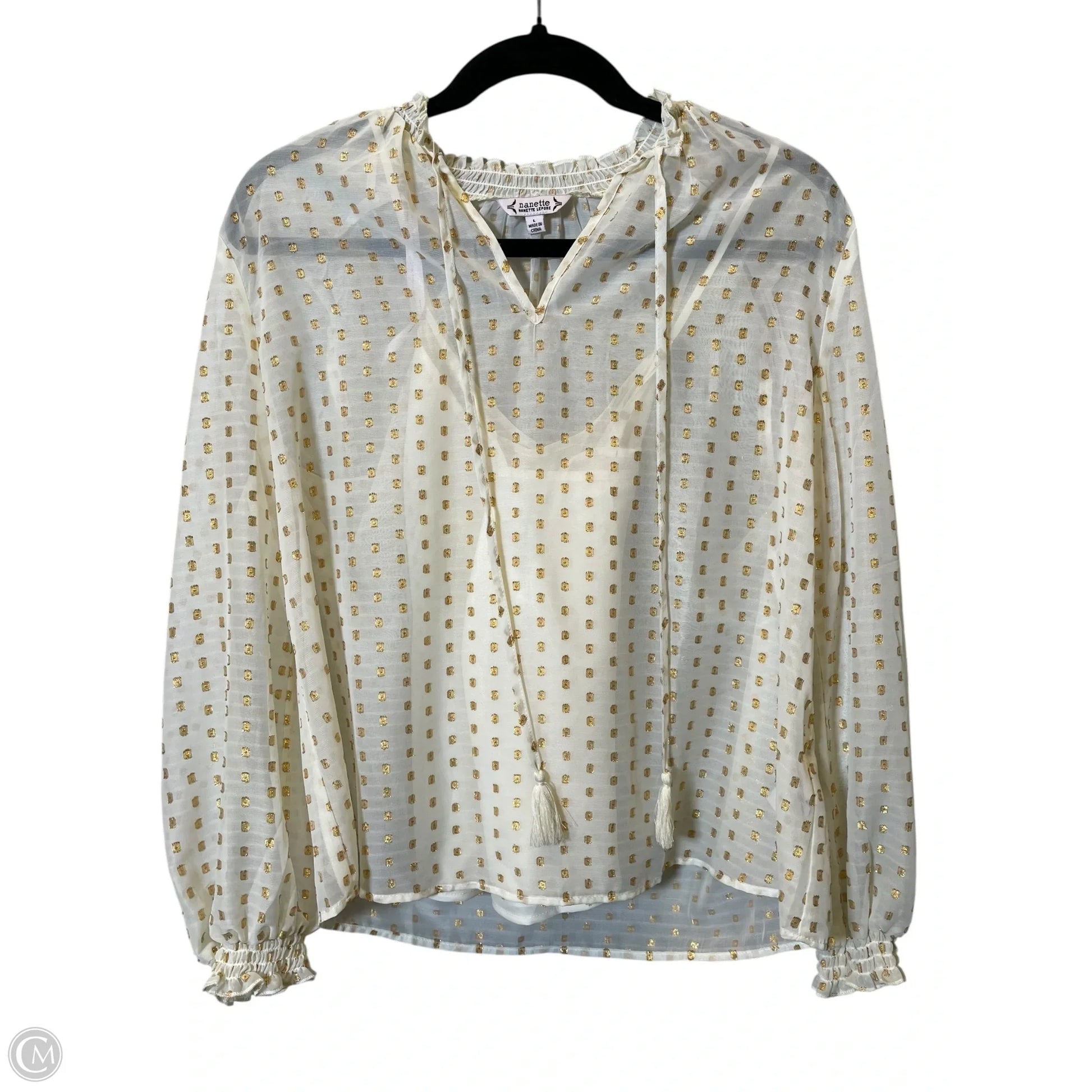 Top Long Sleeve By Nanette Lepore In Gold & Tan, Size: L