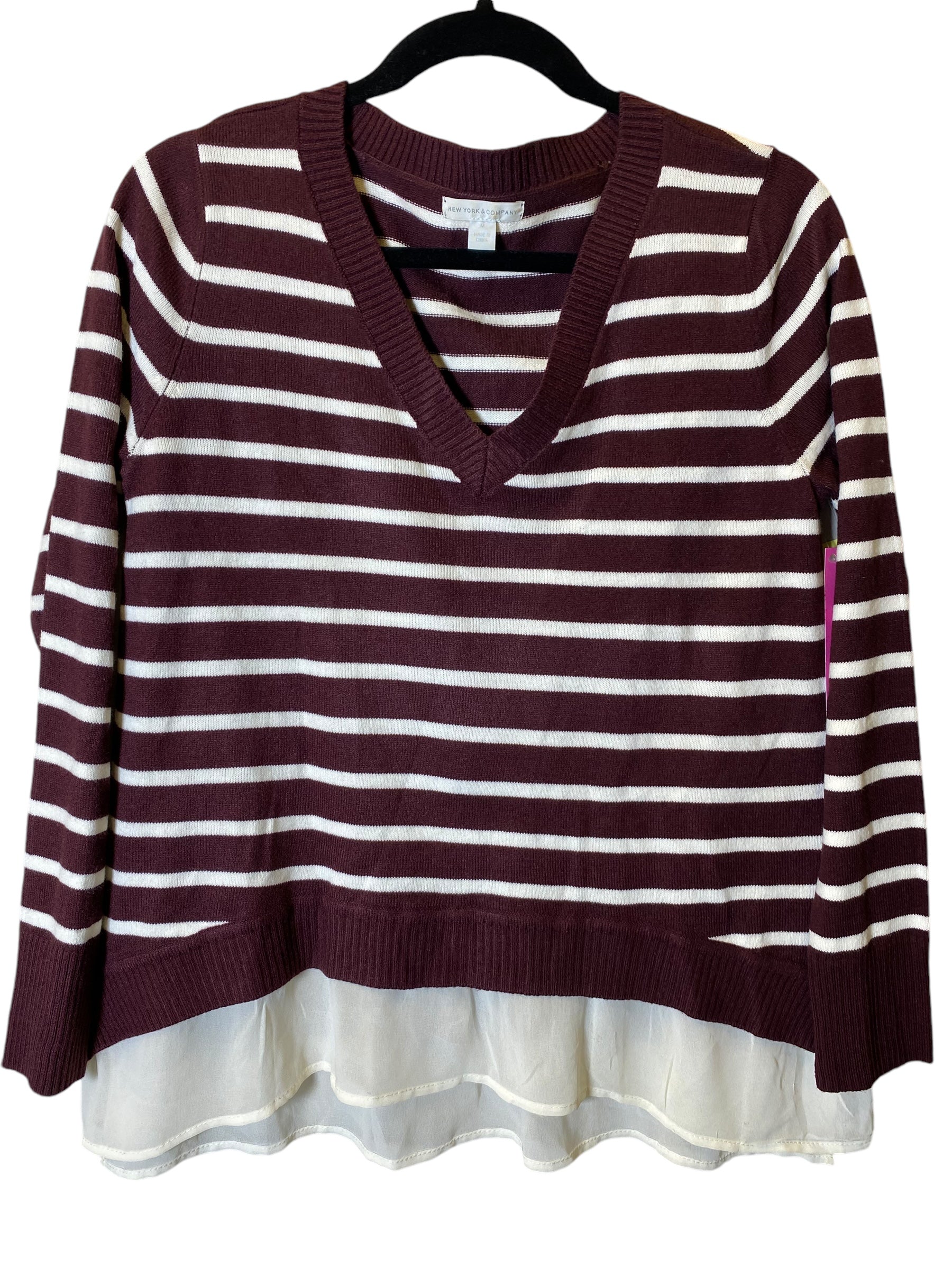 Top Long Sleeve By New York And Co In Striped Pattern, Size: M