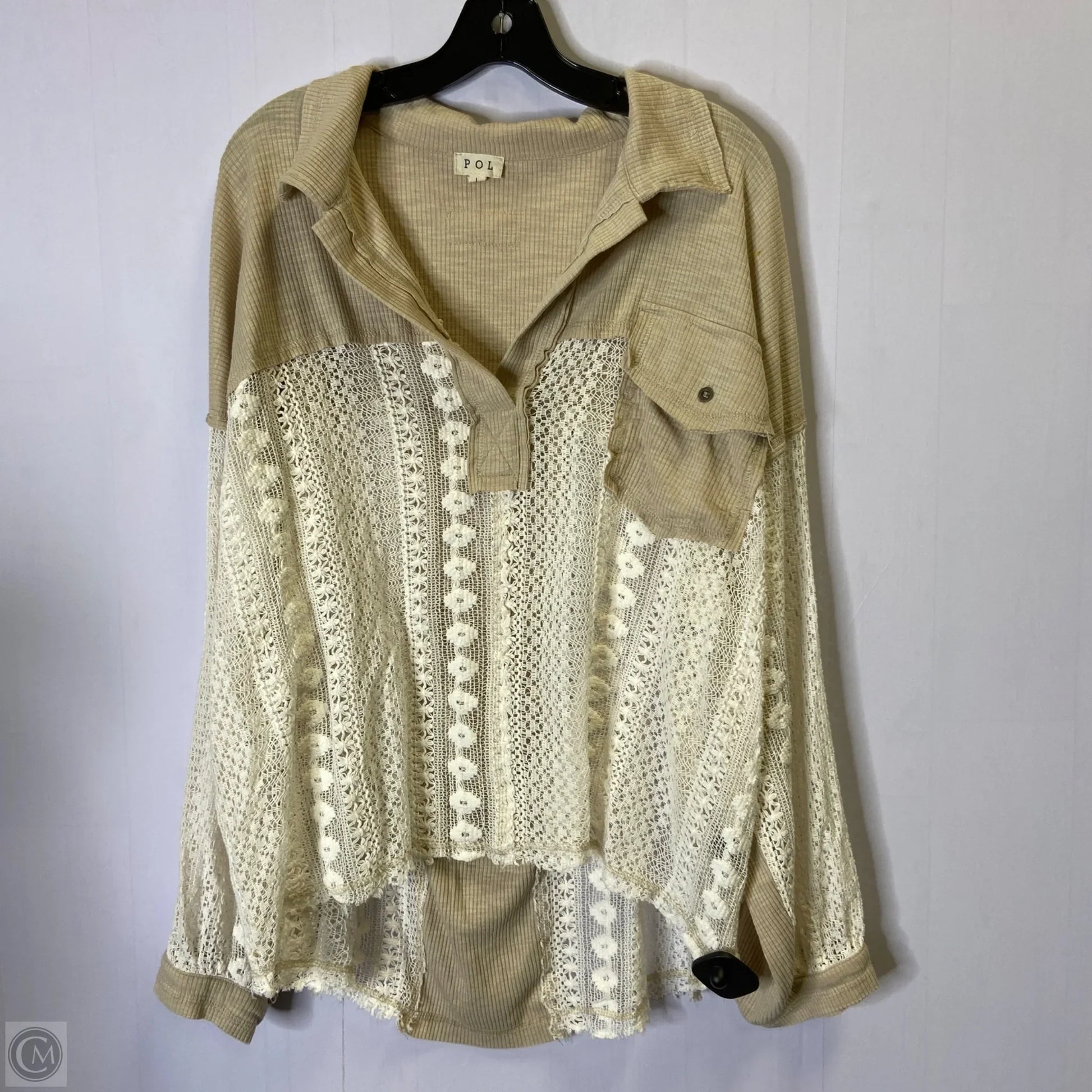 Top Long Sleeve By Pol In Cream & Tan, Size: L