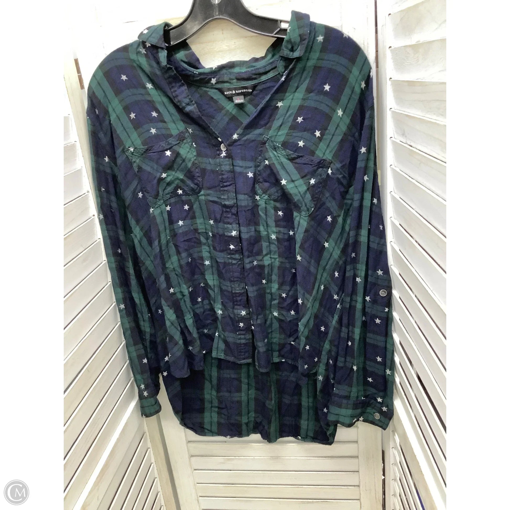 Top Long Sleeve By Rock And Republic In Plaid Pattern, Size: L