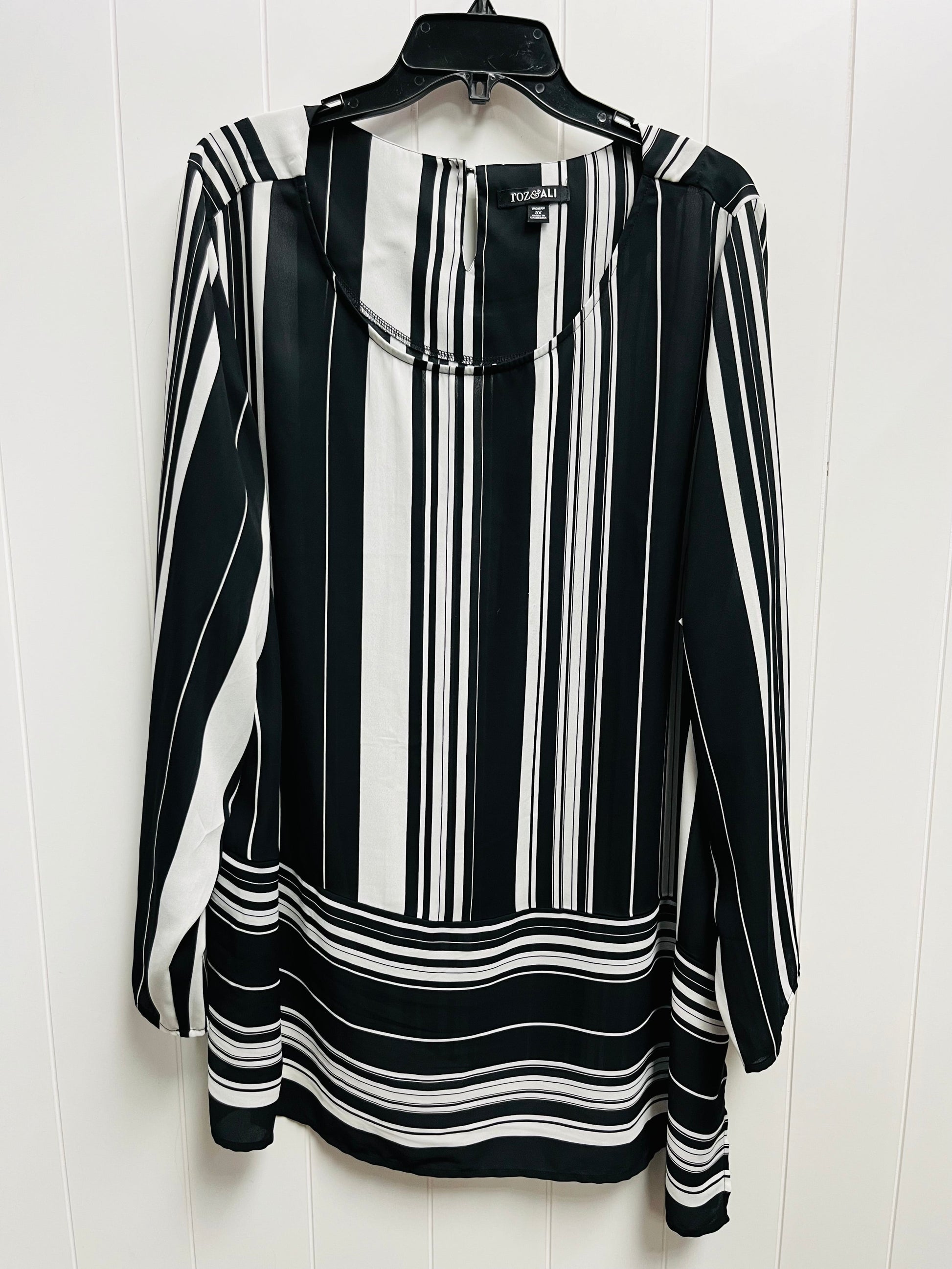 Top Long Sleeve By Roz And Ali In Black & White, Size: 3x