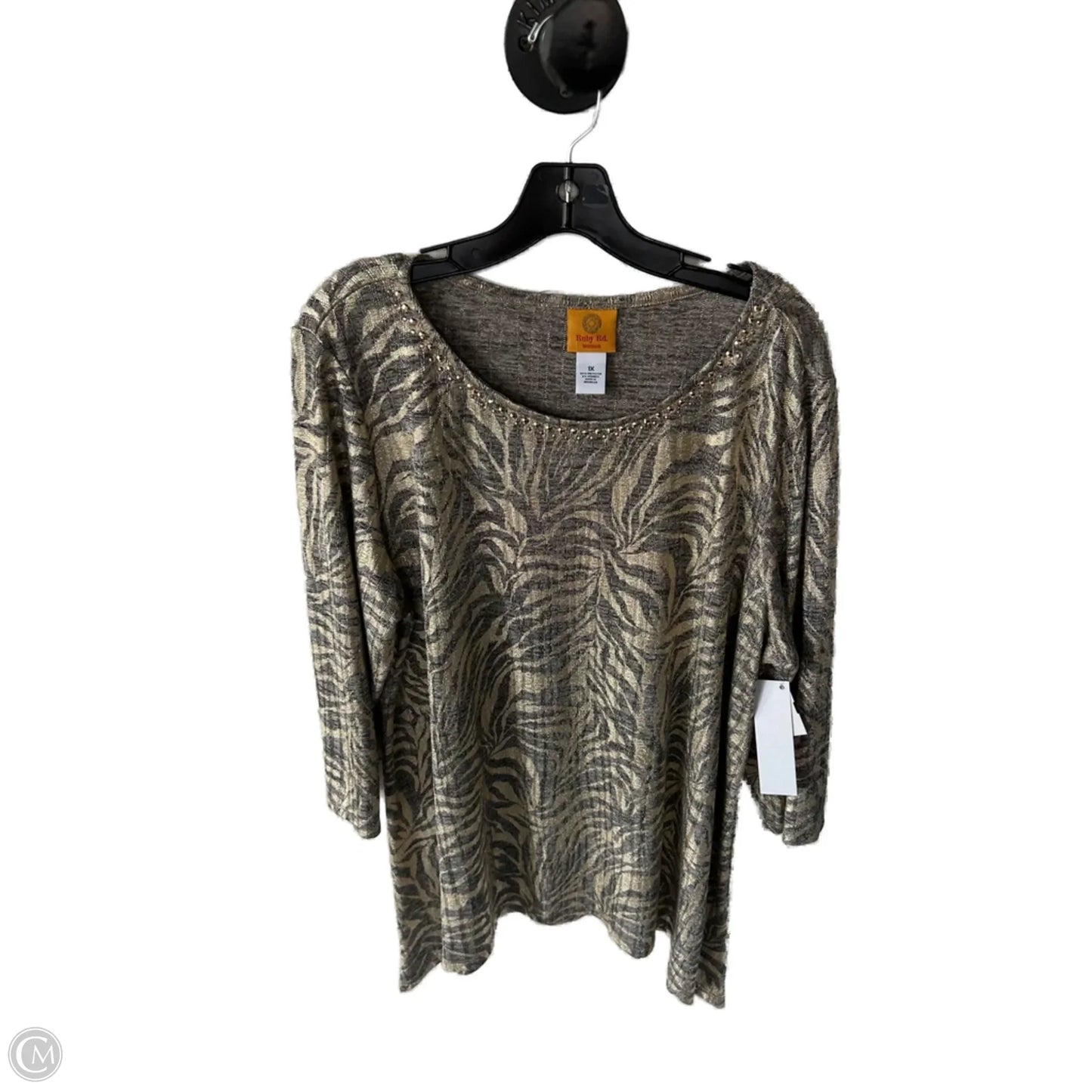 Top Long Sleeve By Ruby Rd In Gold & Grey, Size: 1x