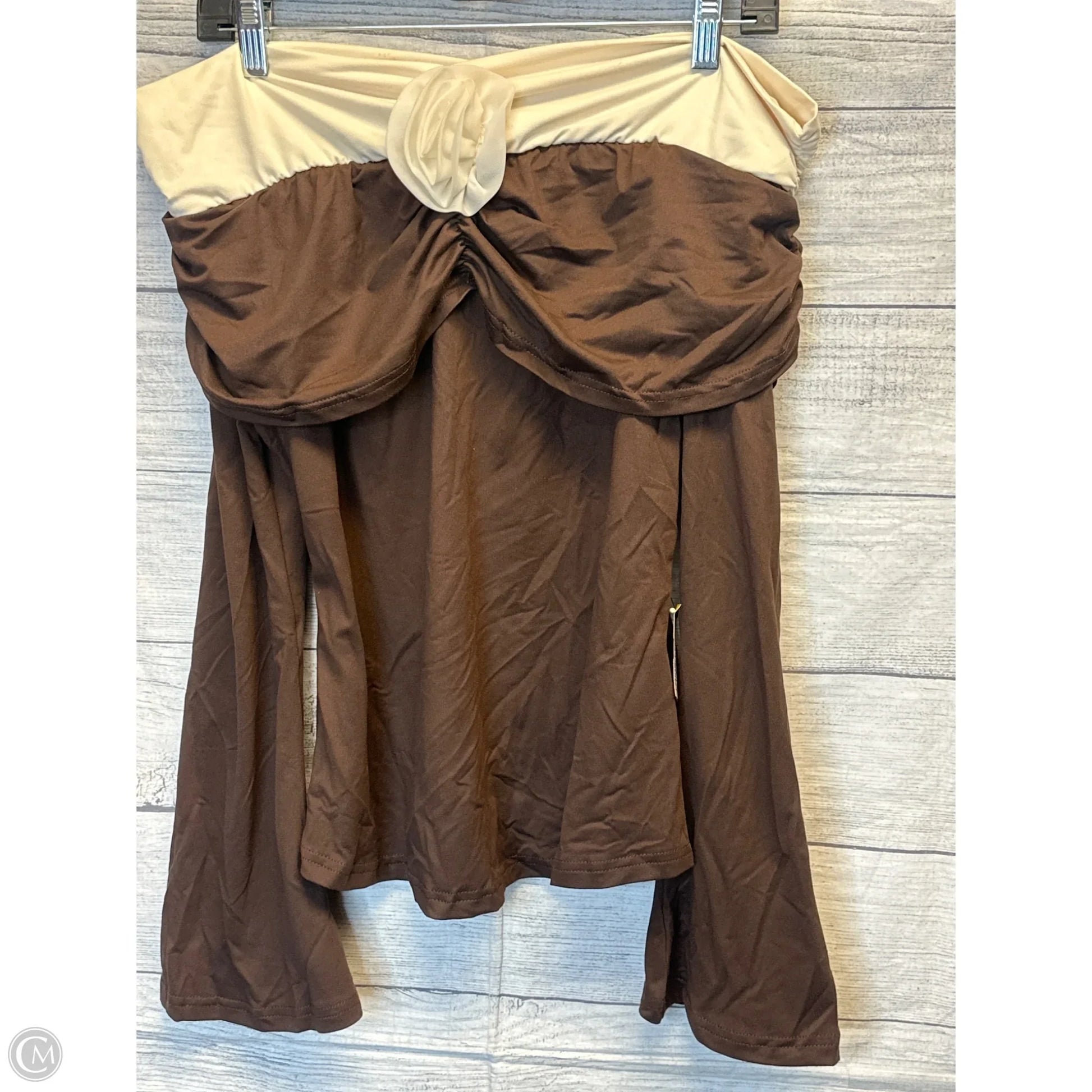 Top Long Sleeve By Shein In Brown & Cream, Size: L