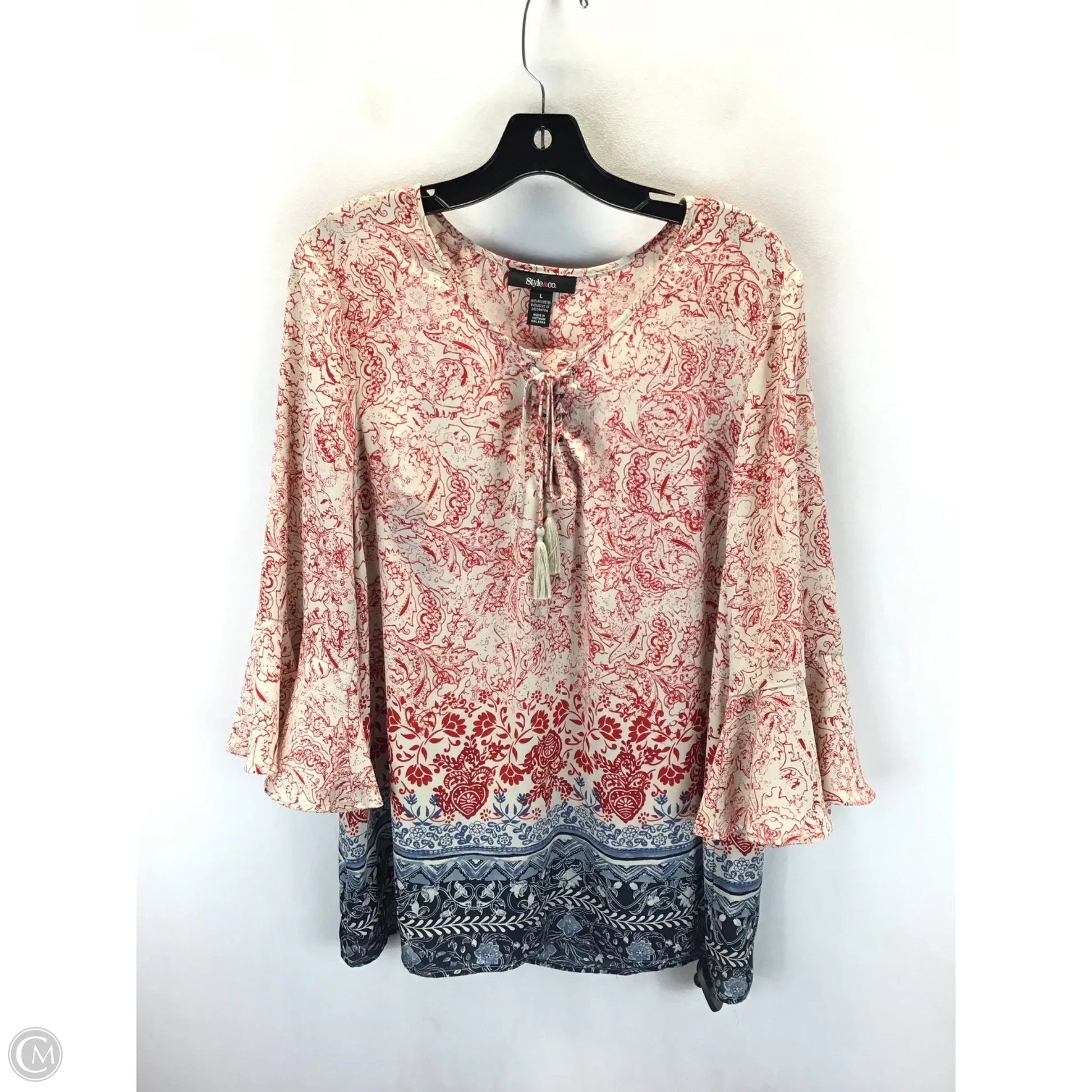 Top Long Sleeve By Style And Company In Red & White, Size: L