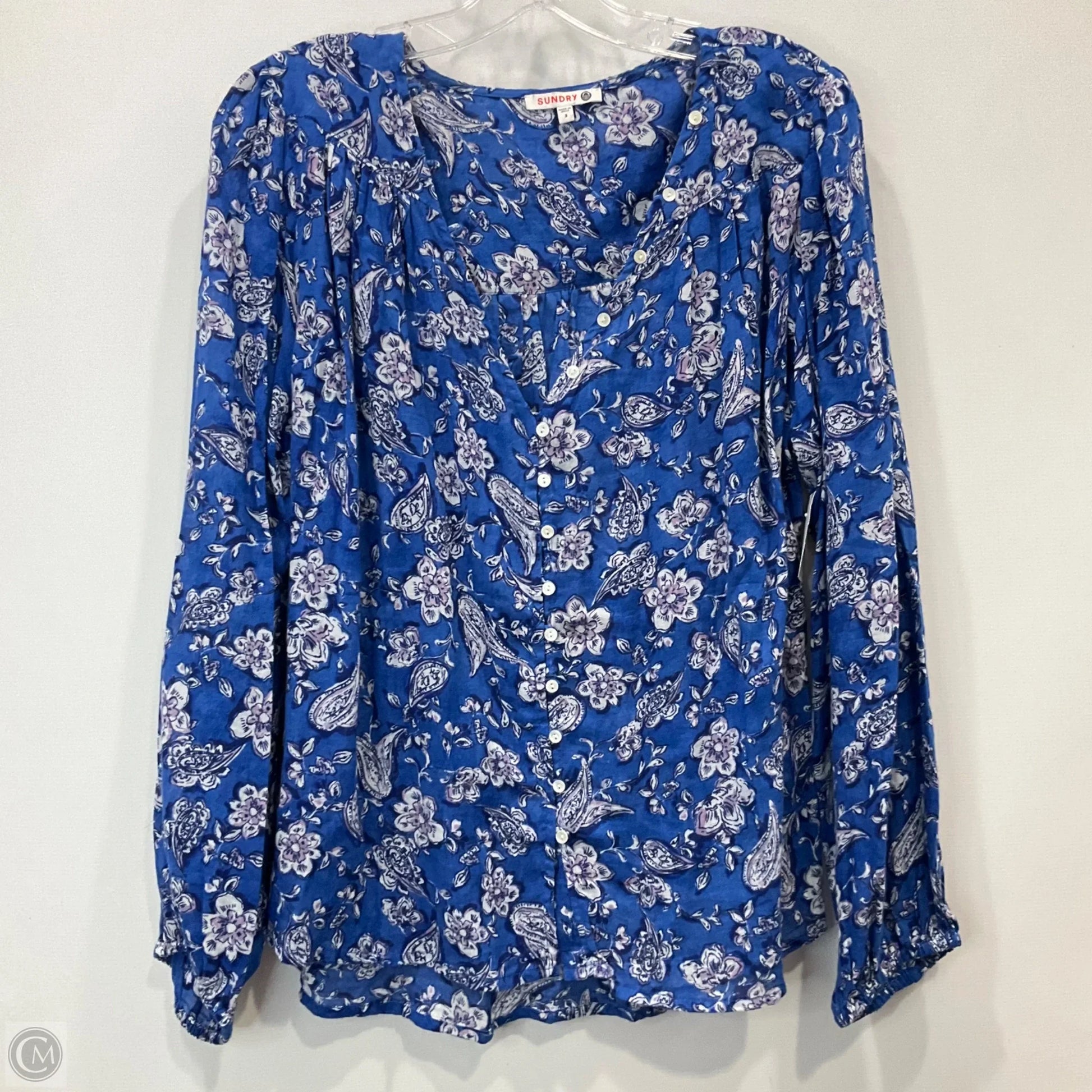 Top Long Sleeve By Sundry In Blue & White, Size: M