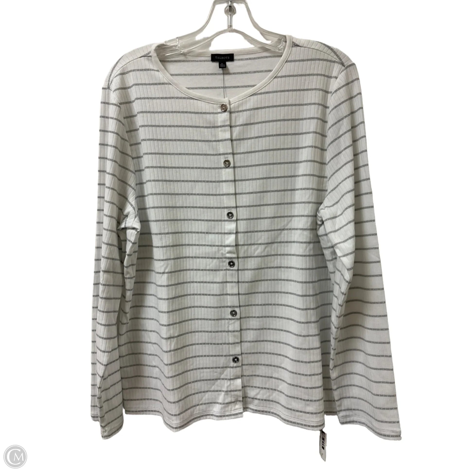 Top Long Sleeve By Talbots In Silver & White, Size: Xl