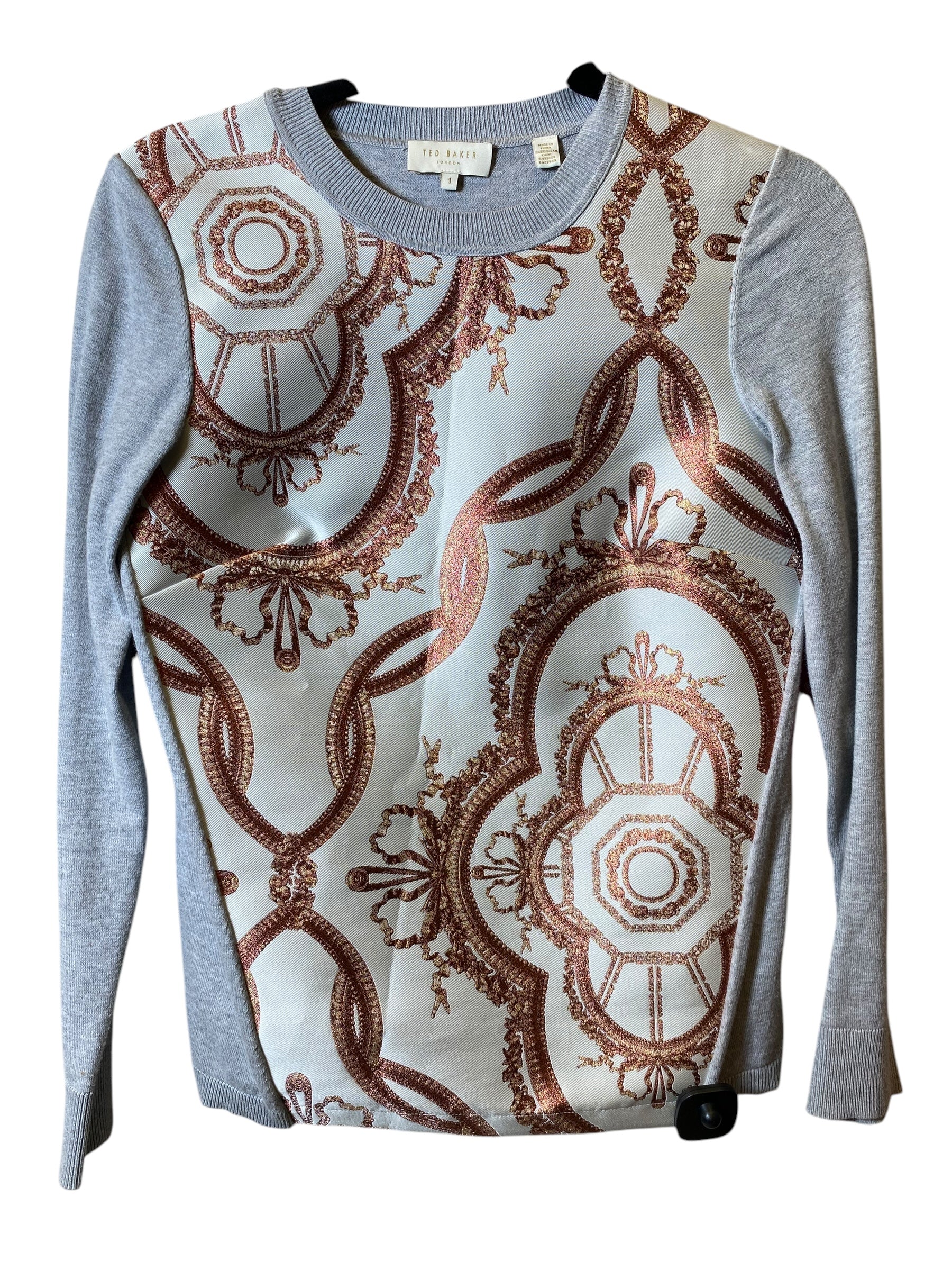 Top Long Sleeve By Ted Baker In Grey & Orange, Size: S