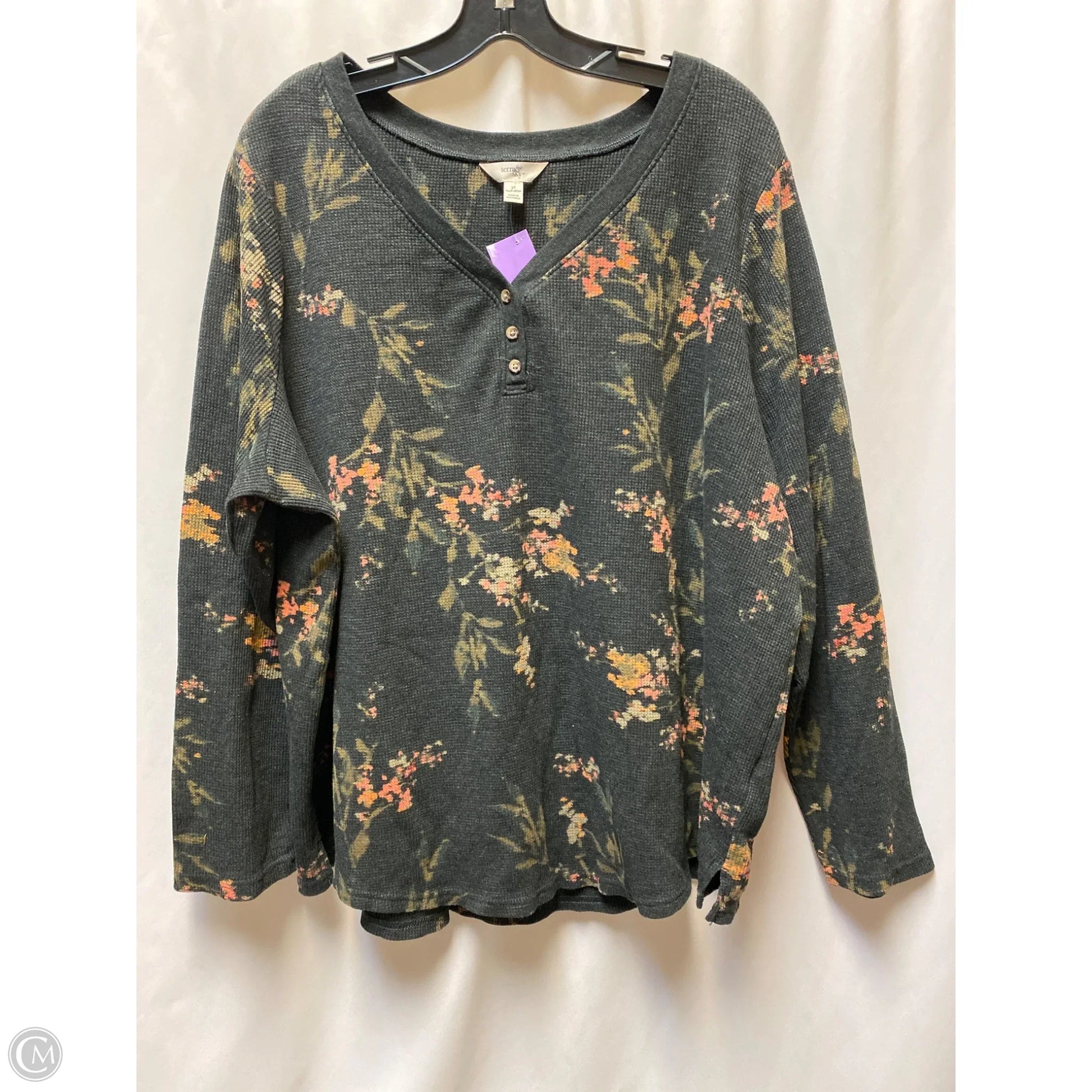 Top Long Sleeve By Terra & Sky In Black, Size: 3x