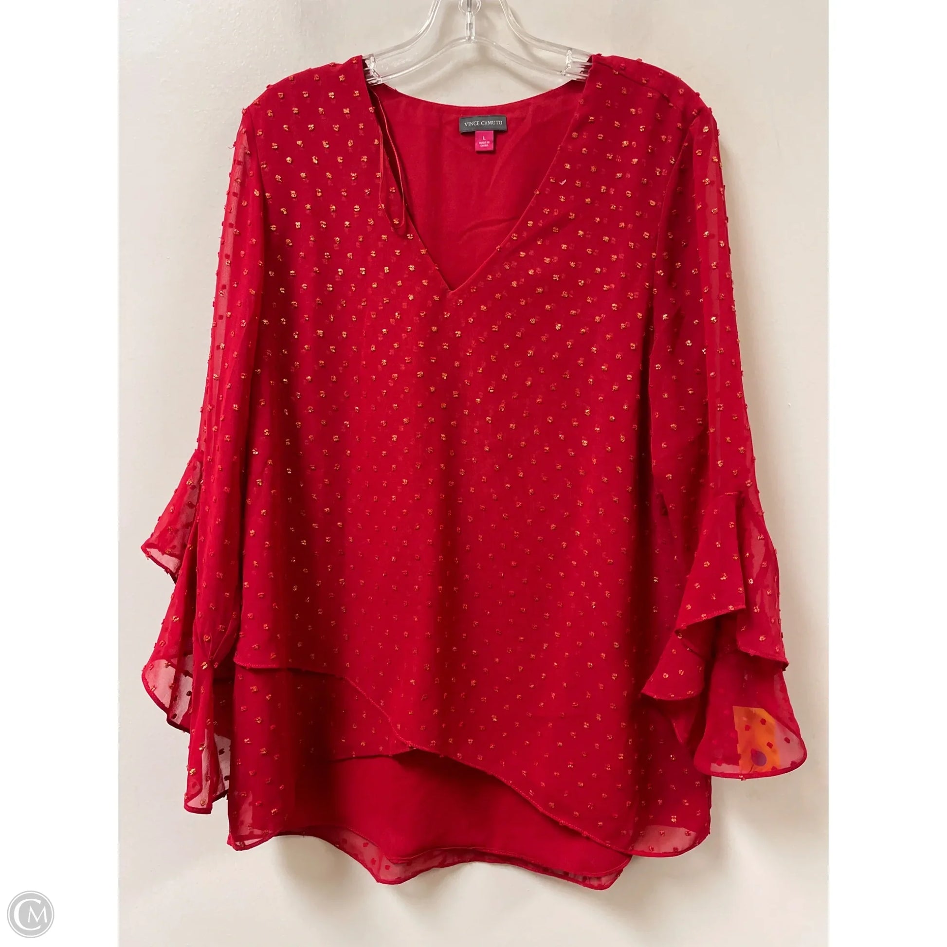 Top Long Sleeve By Vince Camuto In Red, Size: L