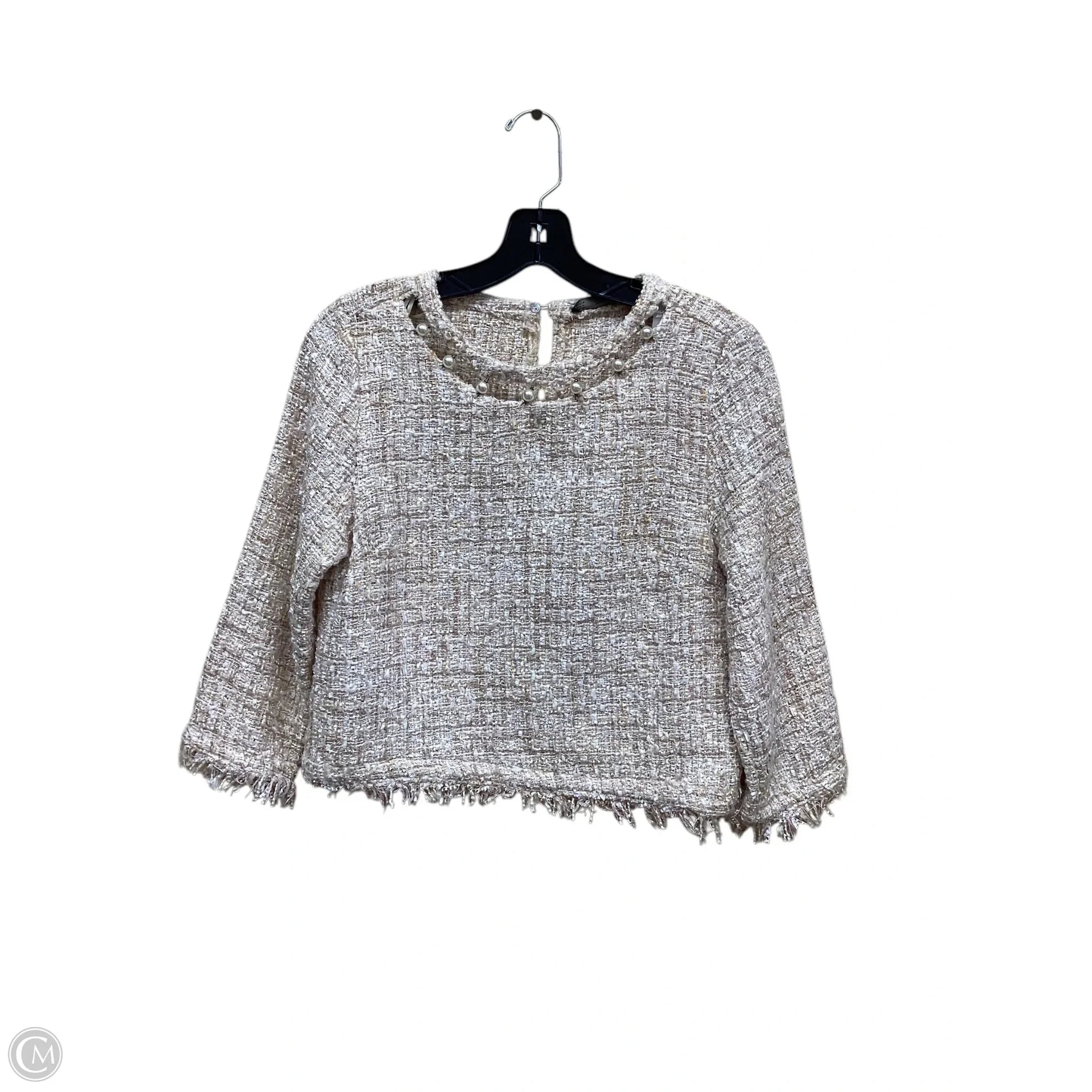 Top Long Sleeve By Zara Basic In Beige, Size: M