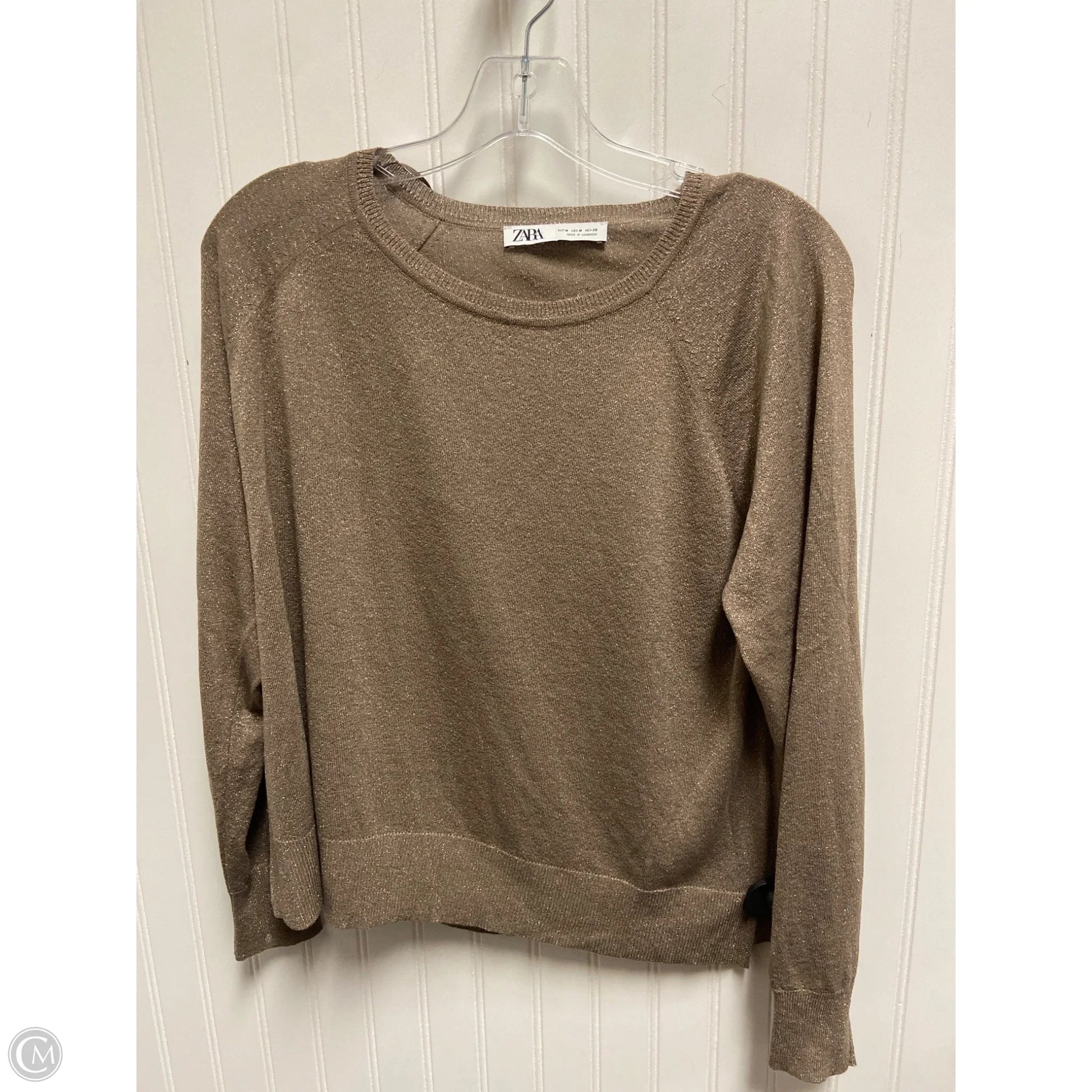 Top Long Sleeve By Zara In Taupe, Size: M