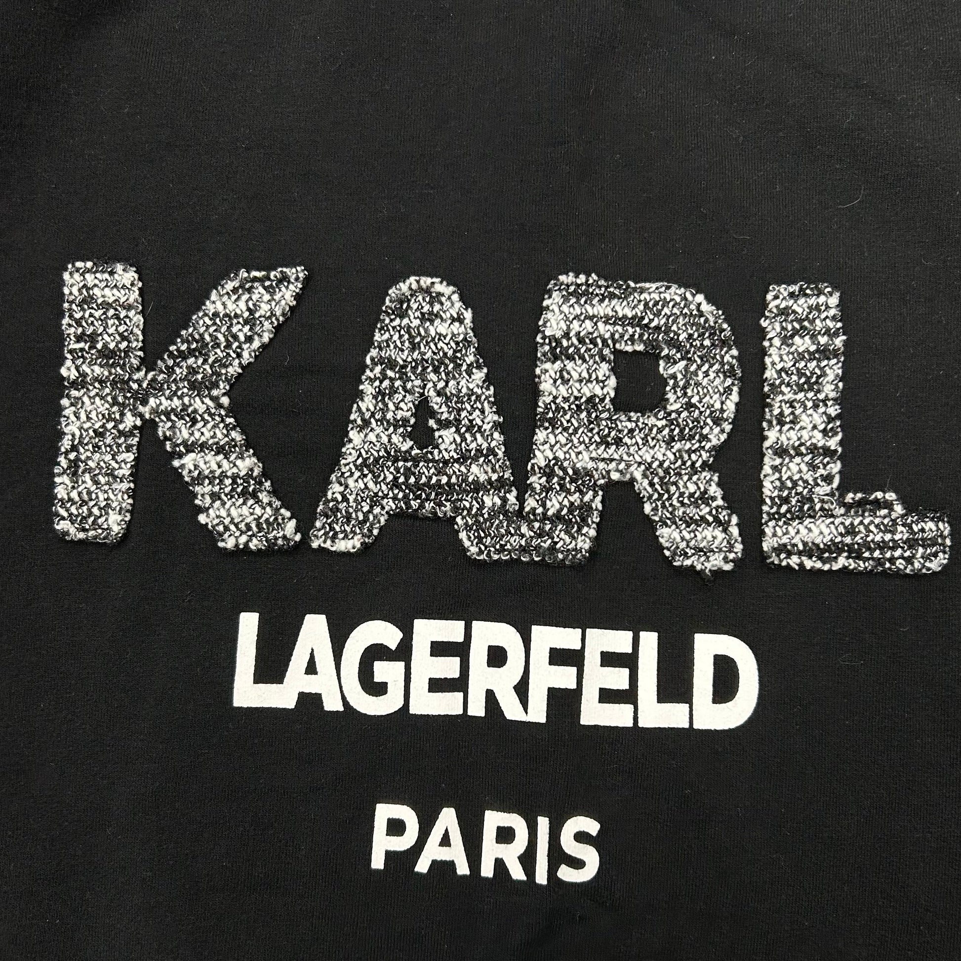 Drape yourself in sleek sophistication with this Karl Lagerfeld black top. The textured fabric and tailored fit exude confidence, making it a standout piece for any occasion. Size M.