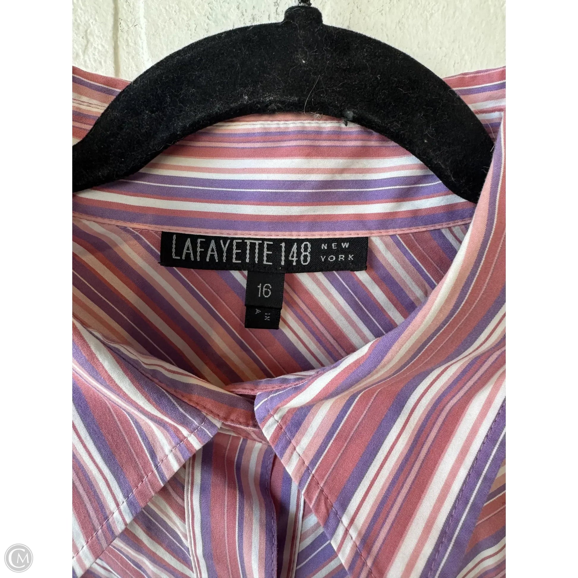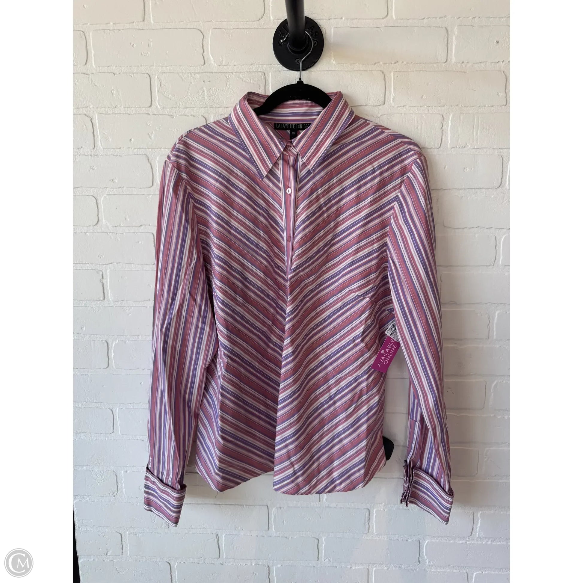 Top Long Sleeve Designer By Lafayette 148 In Pink & White, Size: Xl