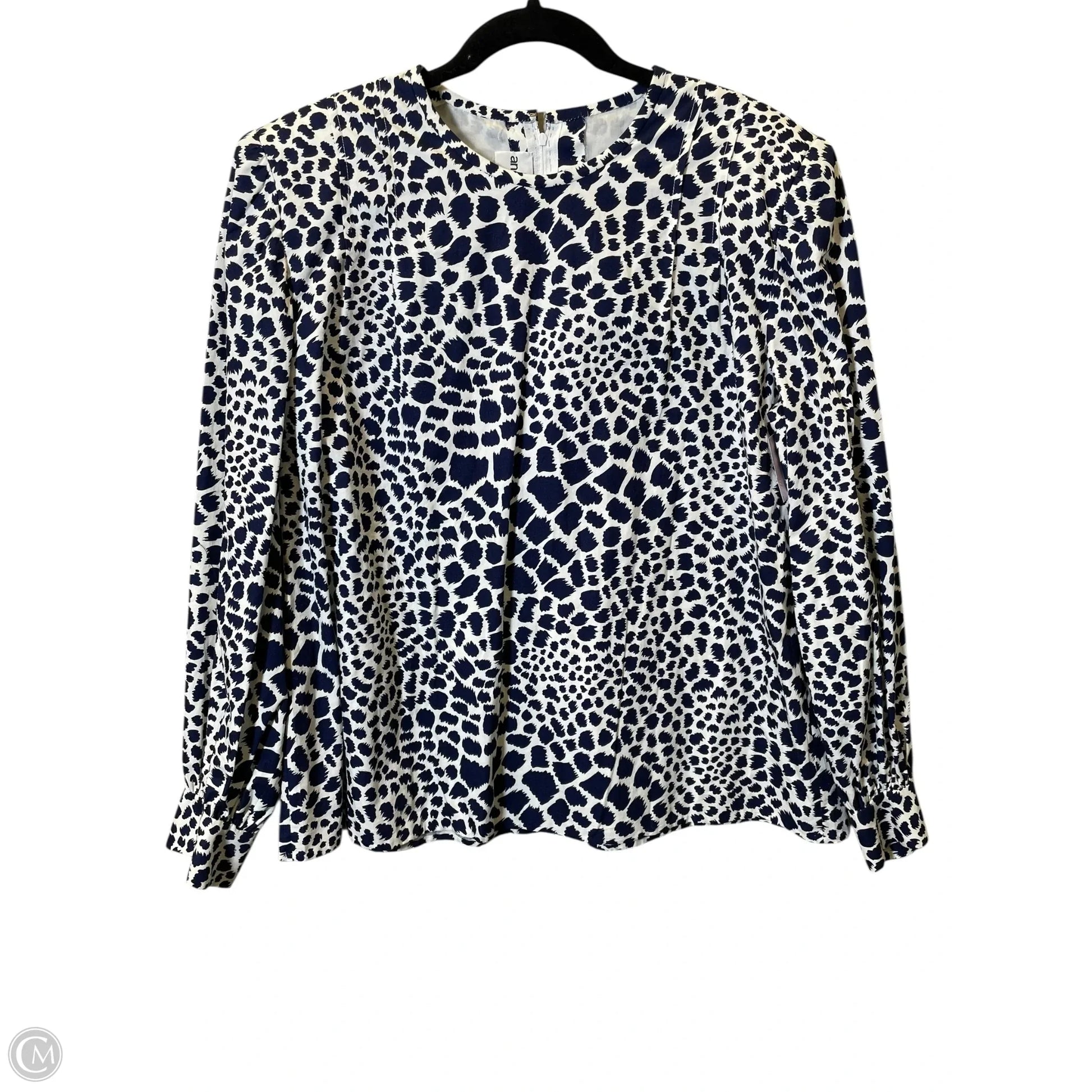 Top Long Sleeve Designer By Neiman Marcus In Blue & White, Size: L