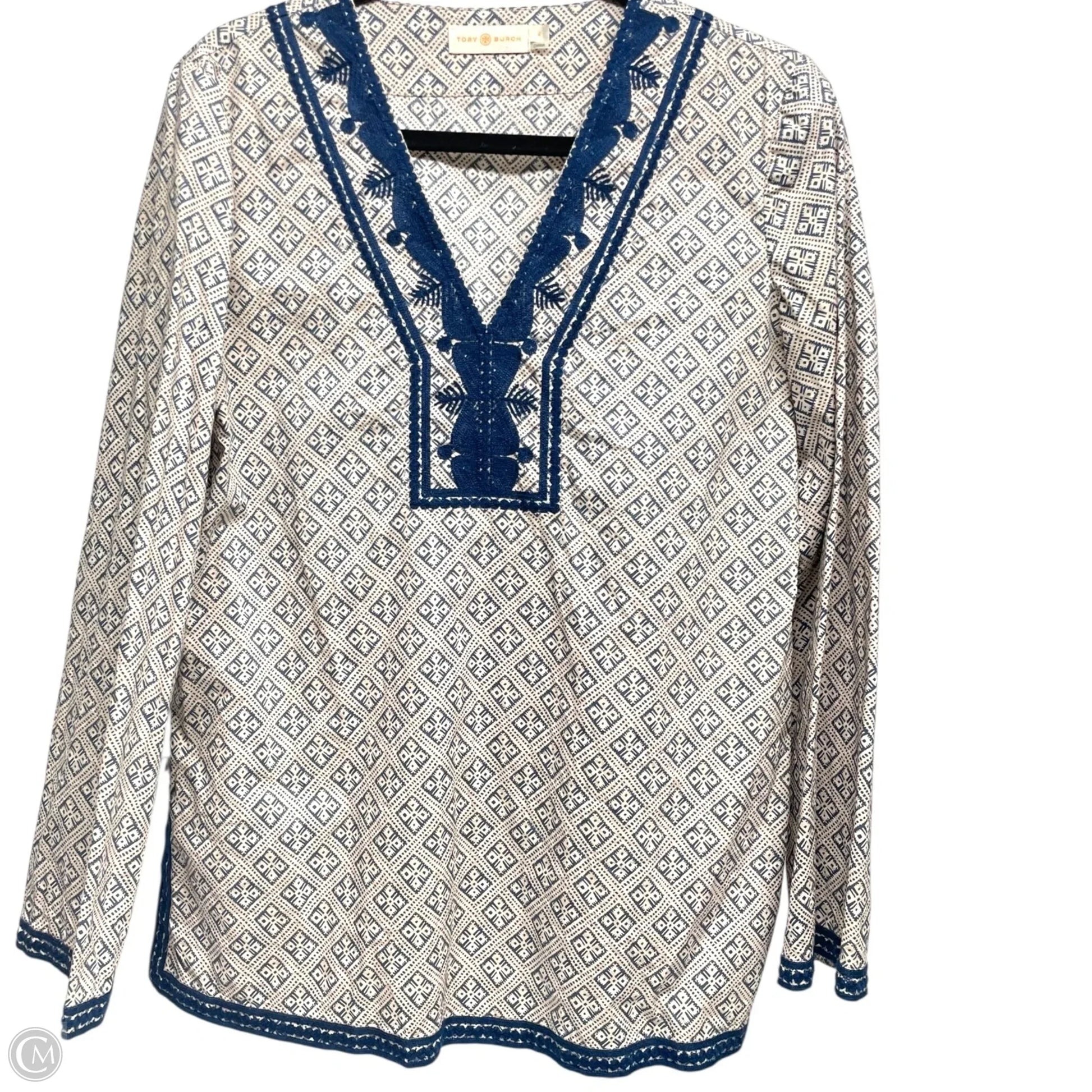 Top Long Sleeve Designer By Tory Burch In Blue & Cream, Size: 6