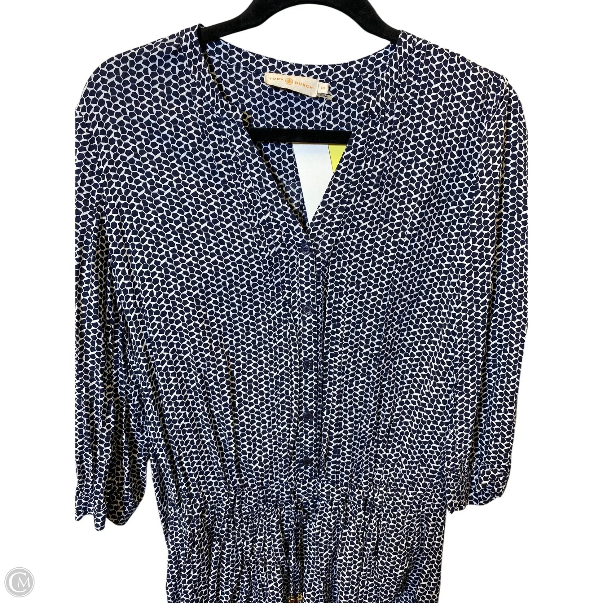 Top Long Sleeve Designer By Tory Burch In Blue & White, Size: S