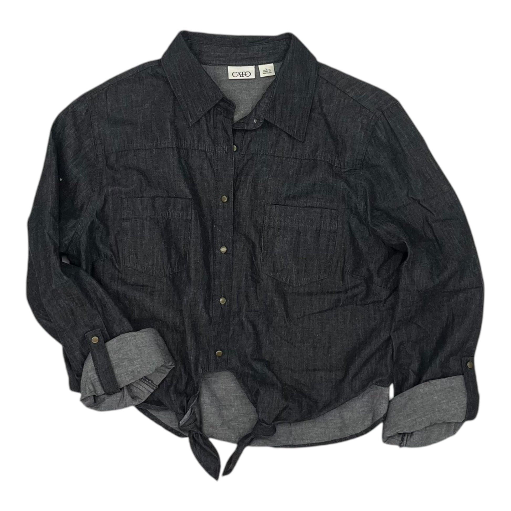 Elevate your style with this sleek black top by Cato in size L. Bold, versatile, and perfect for effortless chic.
