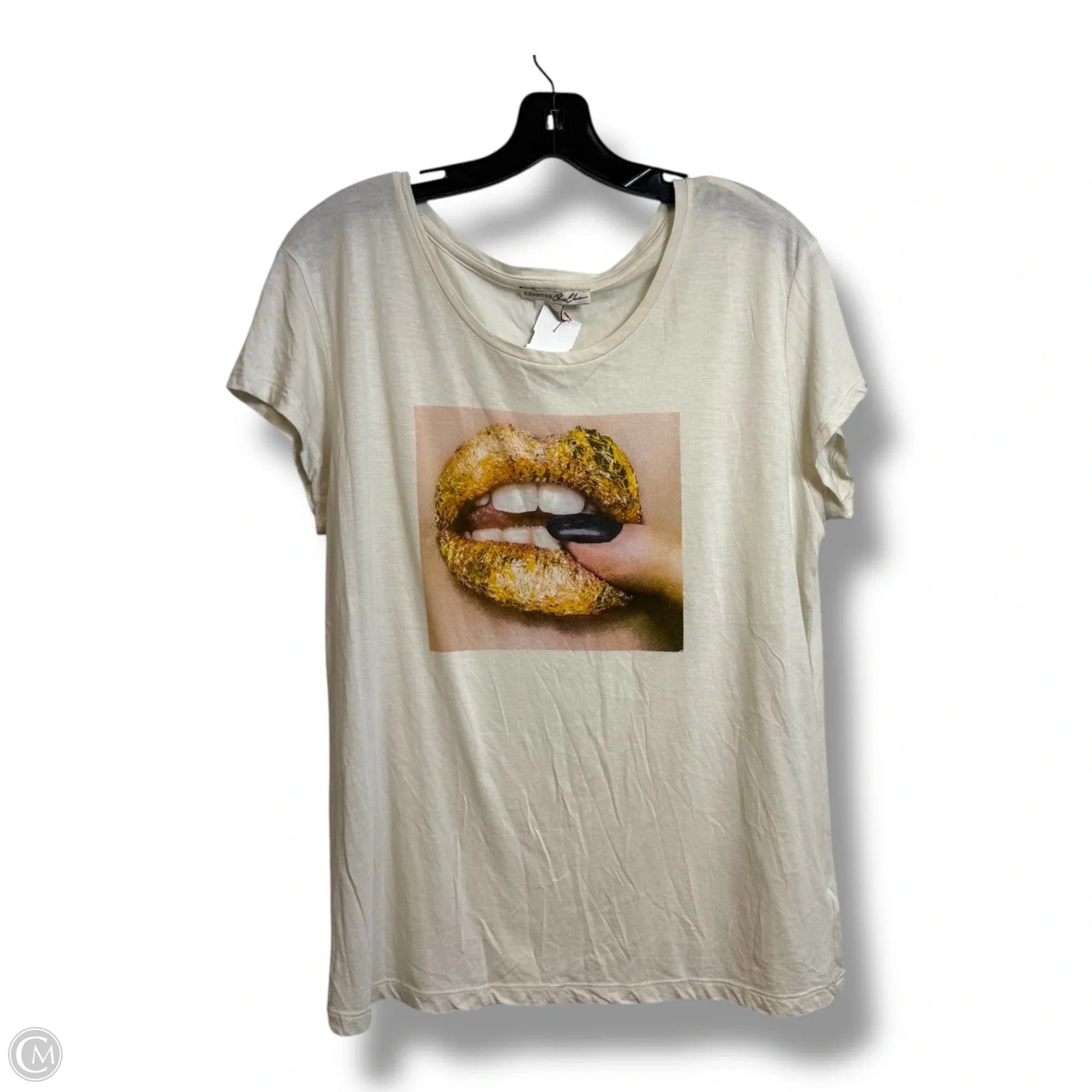 Top Short Sleeve Basic By Express In Beige, Size: M
