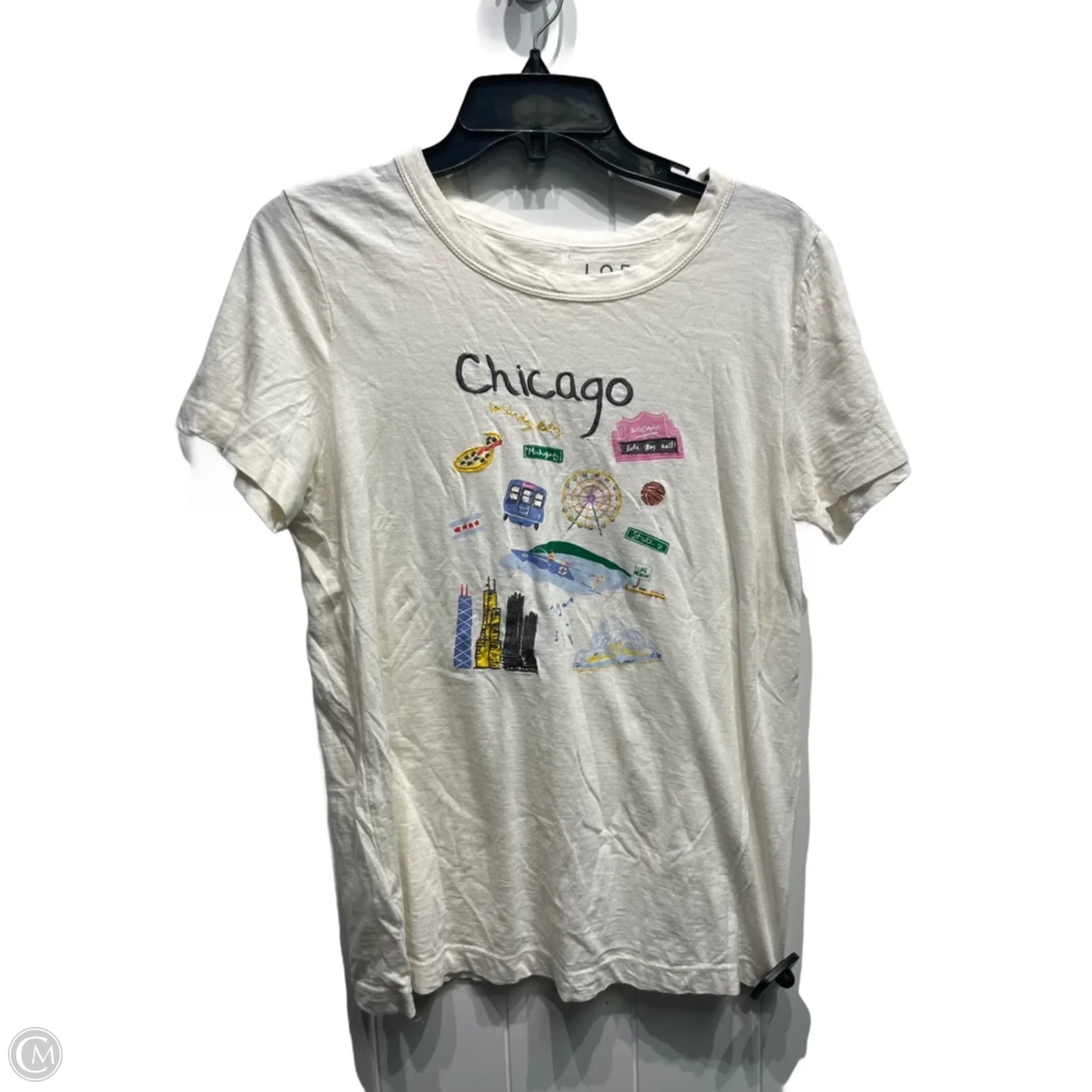 Top Short Sleeve Basic By Loft In Cream & Pink, Size: M