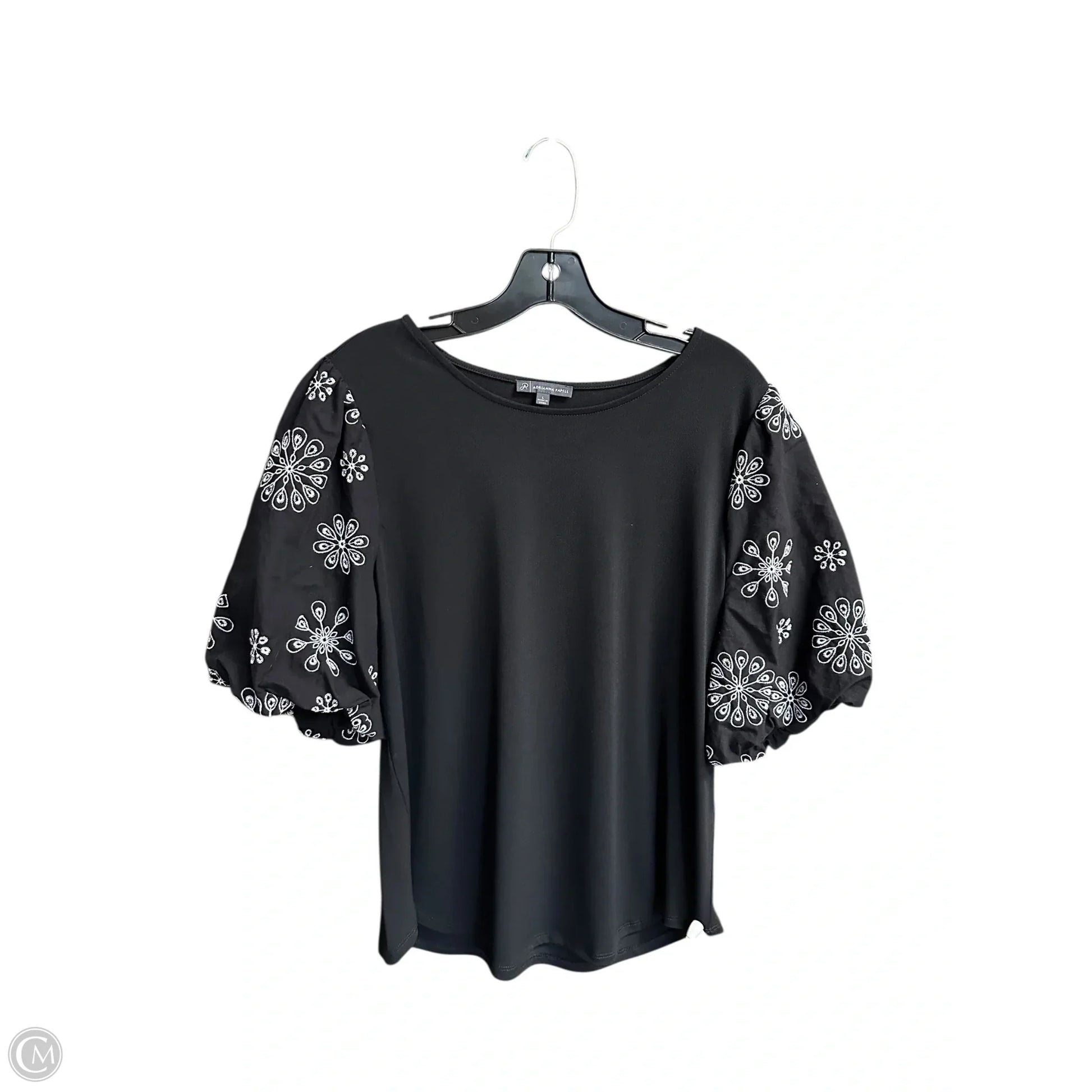 Top Short Sleeve By Adrianna Papell In Black, Size: L
