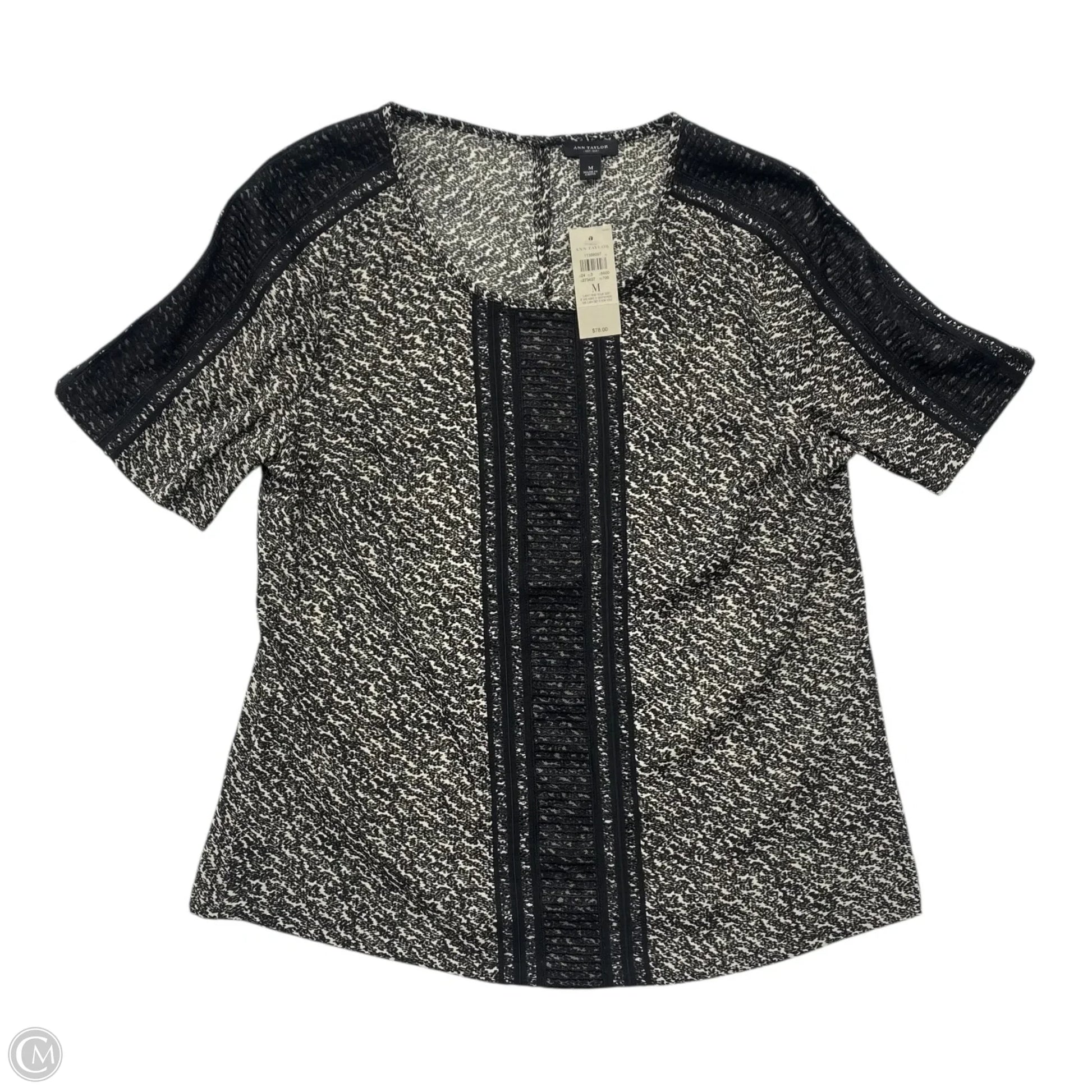 Top Short Sleeve By Ann Taylor In Black & White, Size: M
