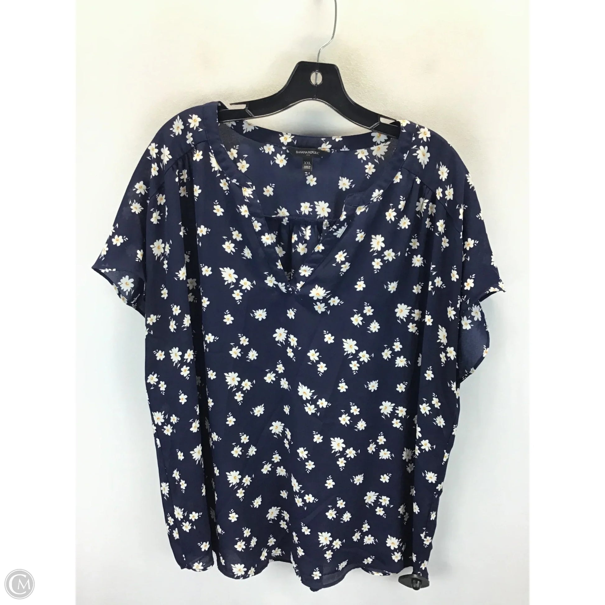 Top Short Sleeve By Banana Republic In Blue & White, Size: Xxl