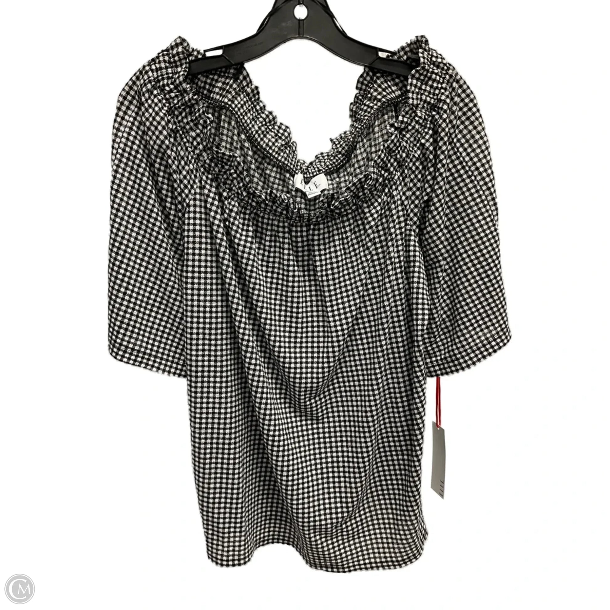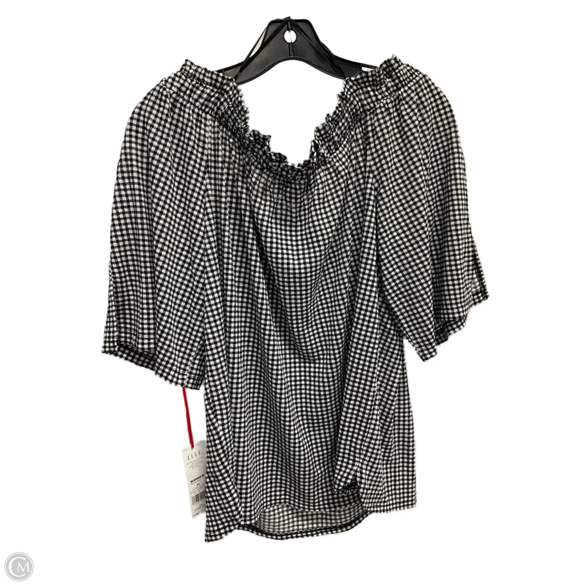 Top Short Sleeve By Elle In Checkered Pattern, Size: Xl
