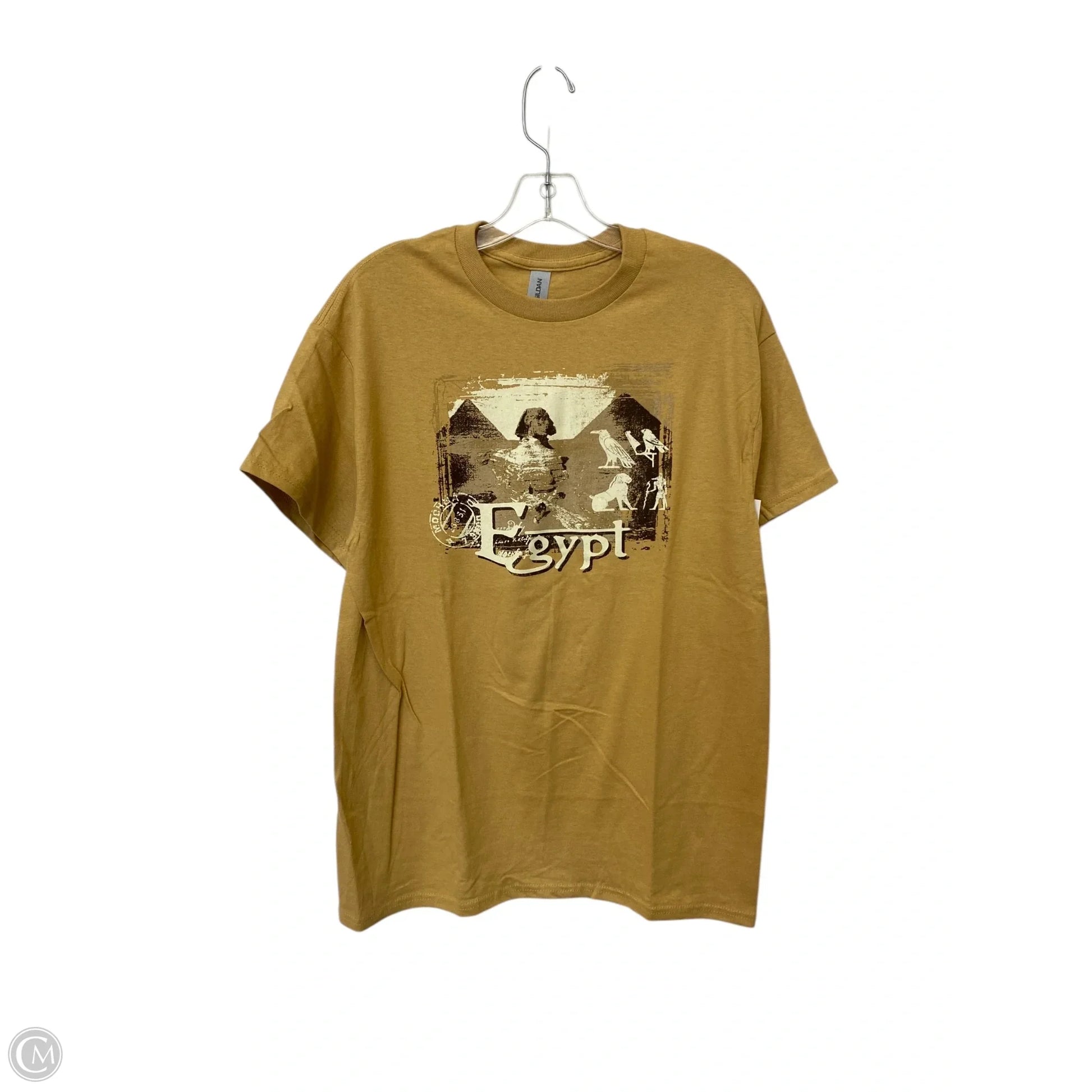 Top Short Sleeve By Gildan In Tan, Size: M