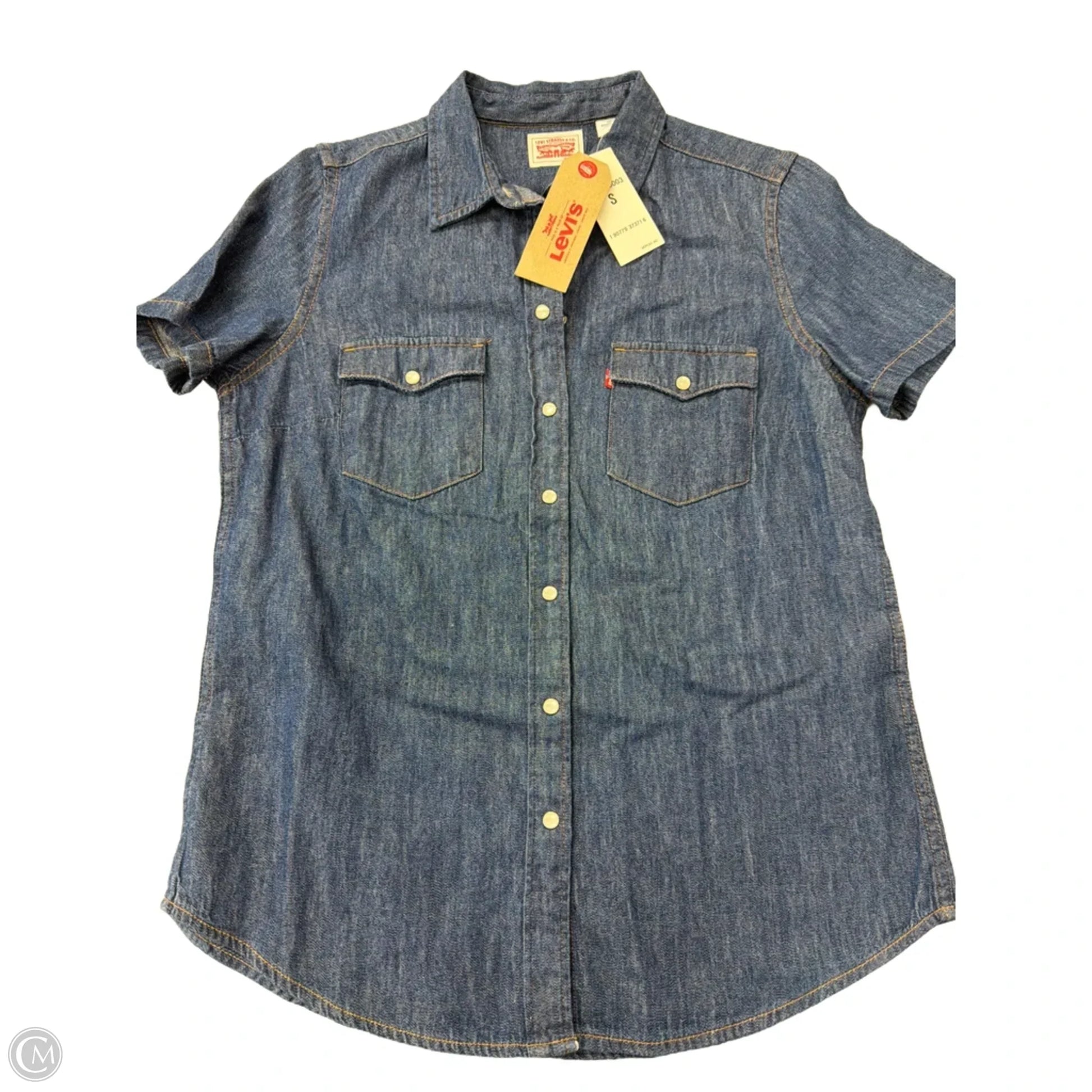 Top Short Sleeve By Levis In Blue Denim, Size: S