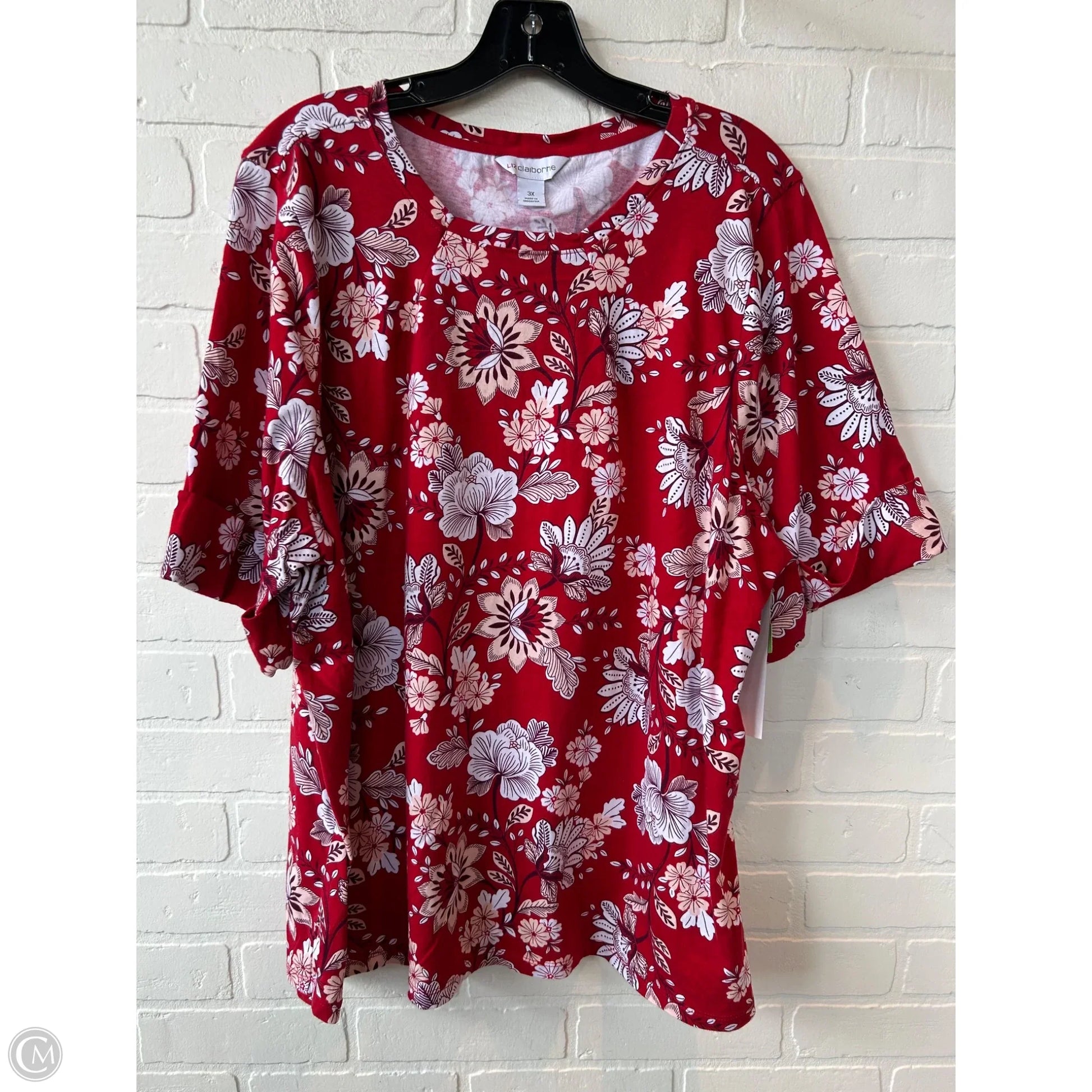 Top Short Sleeve By Liz Claiborne In Red & White, Size: 3x