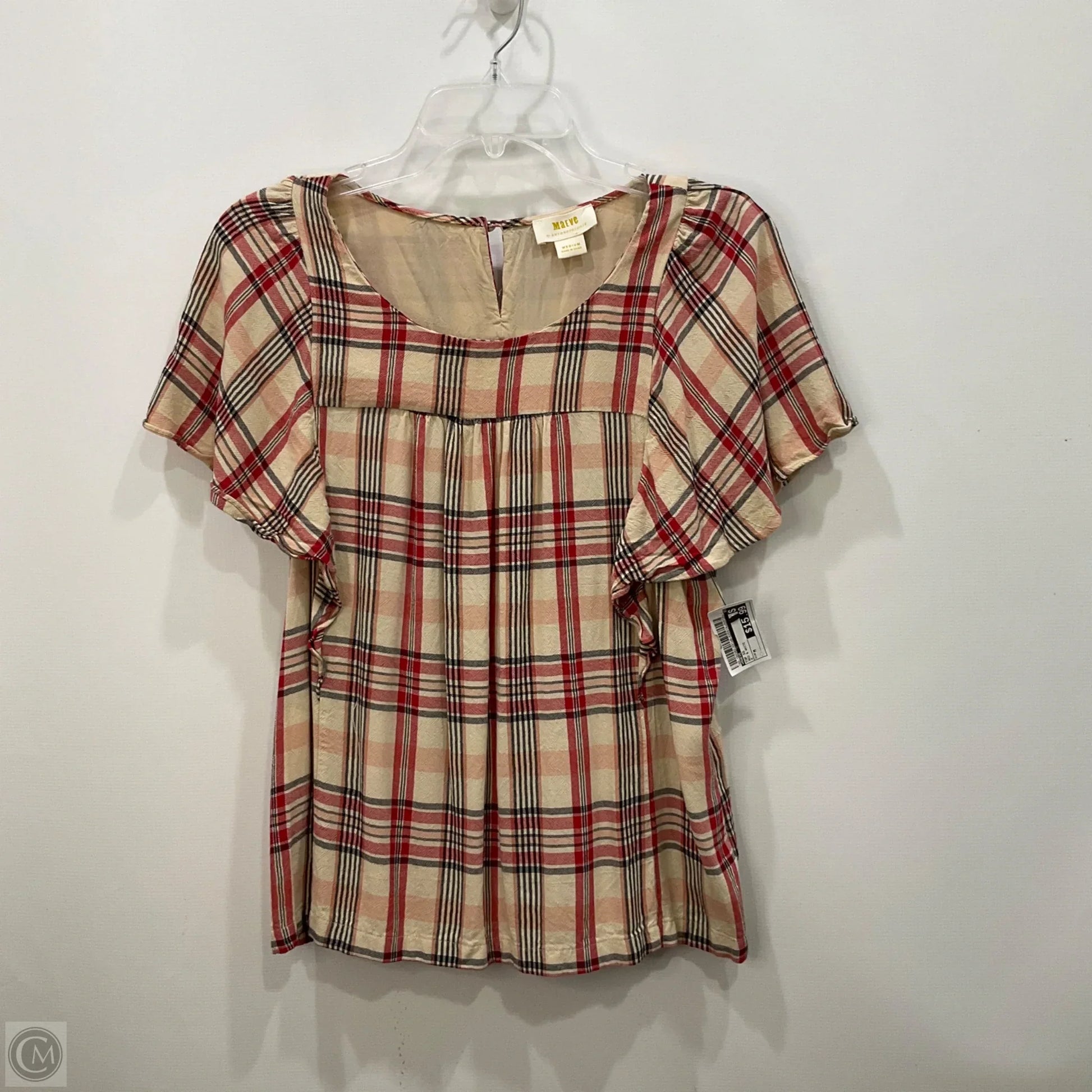 Top Short Sleeve By Maeve In Red & White, Size: M
