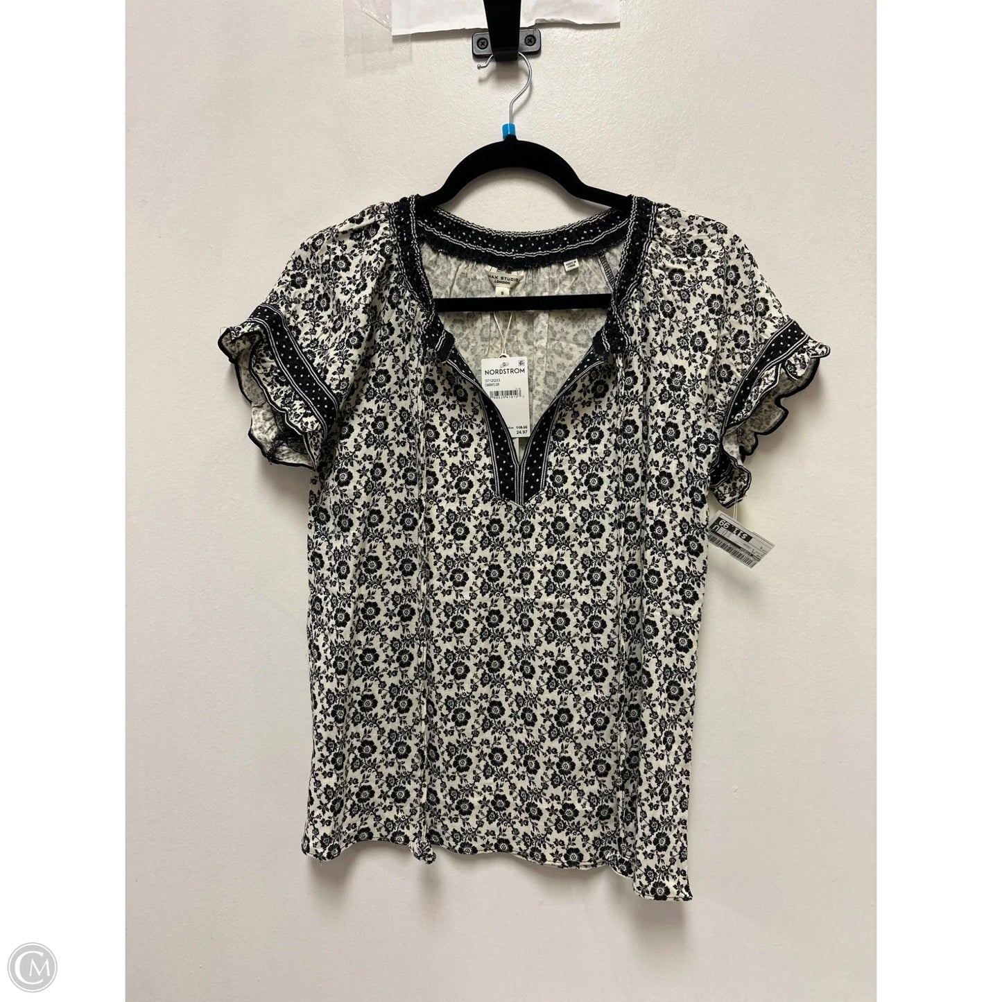 Top Short Sleeve By Max Studio In Black & Cream, Size: S