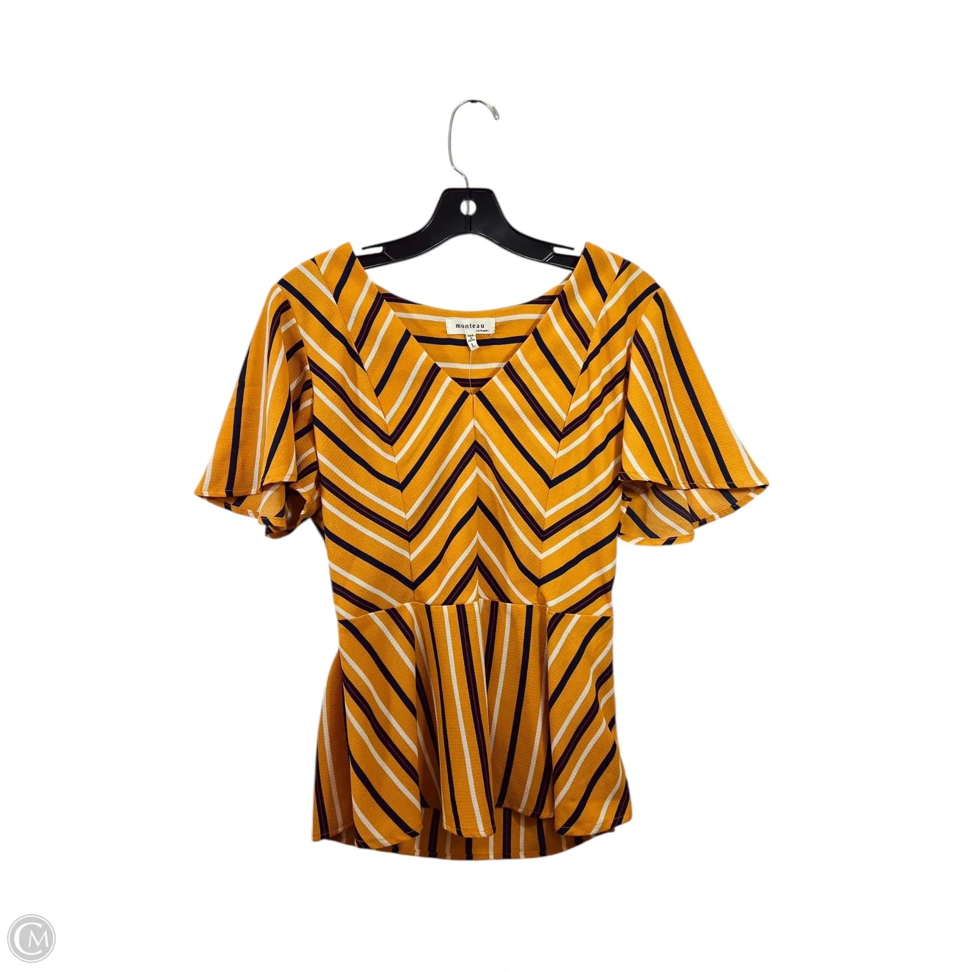 Top Short Sleeve By Monteau In Orange & Tan, Size: L