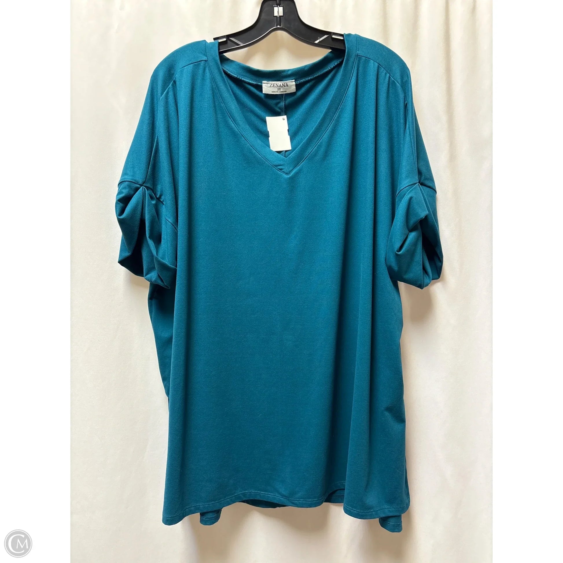 Top Short Sleeve By Zenana Outfitters In Teal, Size: 2x