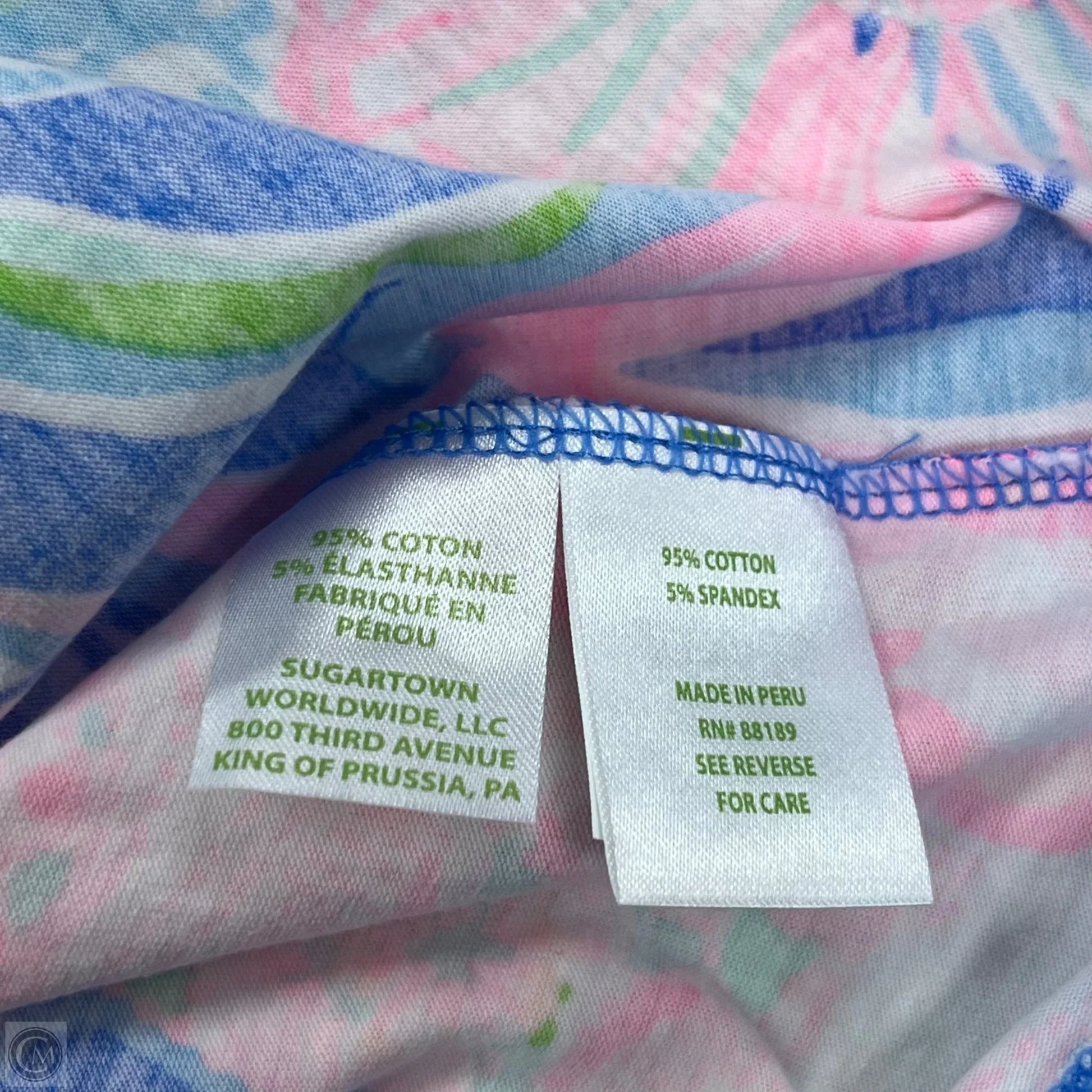 Top Short Sleeve Designer By Lilly Pulitzer In Blue & Pink, Size: L