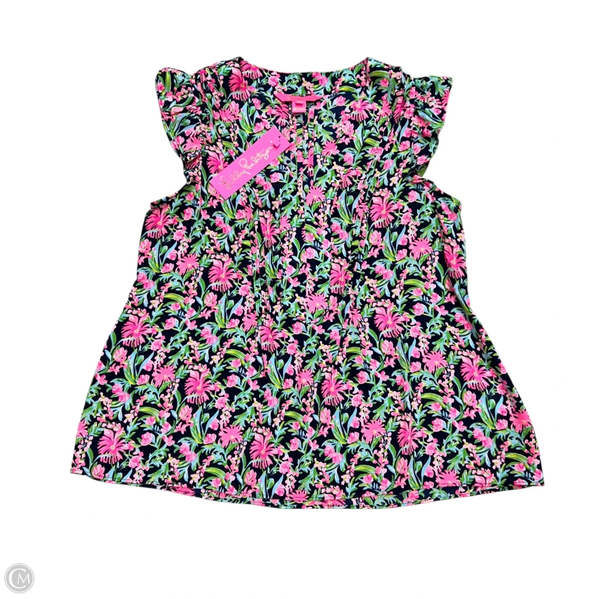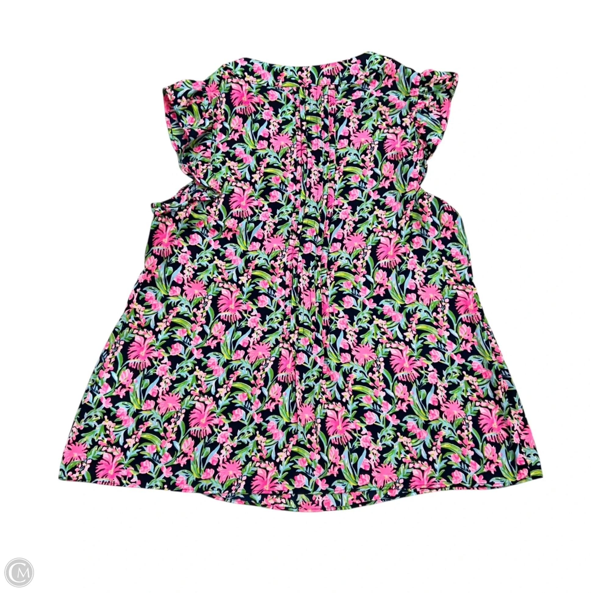 Top Short Sleeve Designer By Lilly Pulitzer In Green & Pink, Size: S