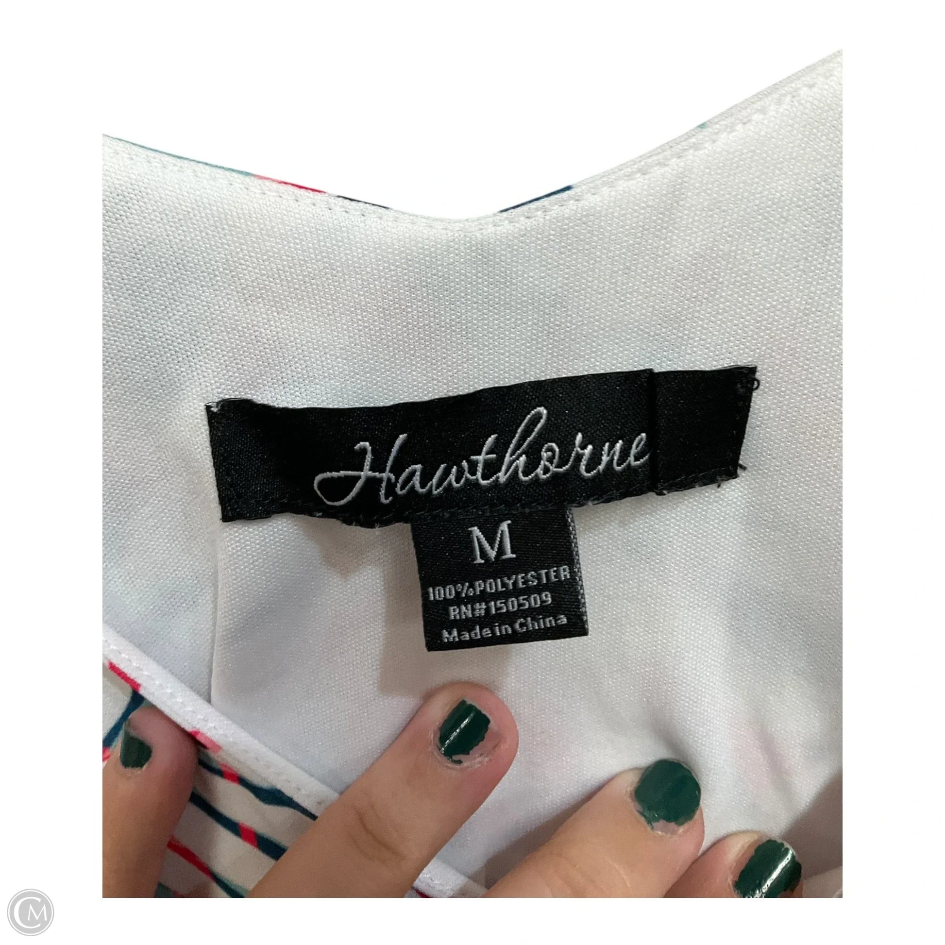 Chic tropical print top by Hawthorn, size M, sleeveless style.