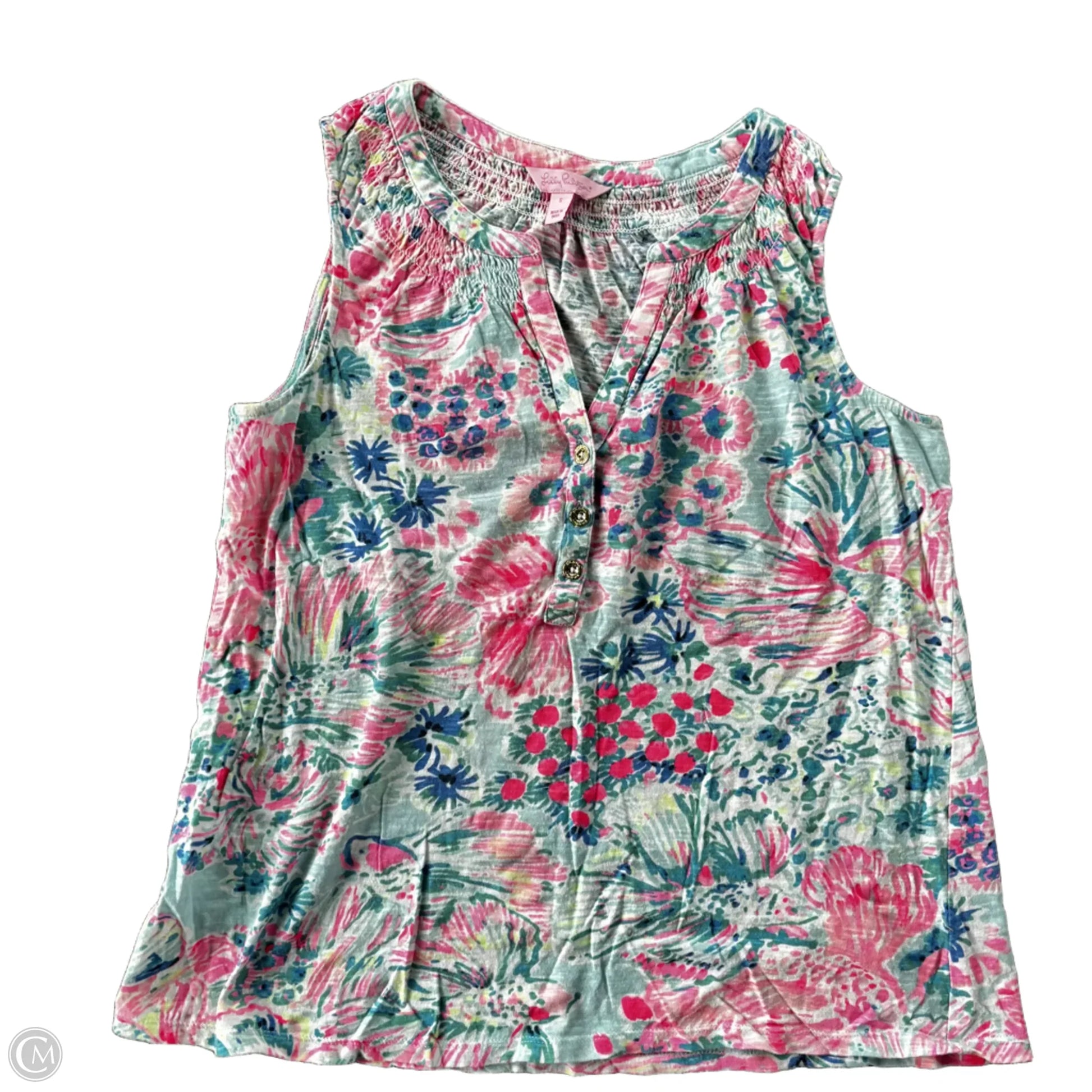 Step into summer with Lilly Pulitzer's sleeveless designer top in a playful blue and pink combo. Size S for a snug fit that flaunts your fabulousness! Get ready to turn heads and make waves wherever you go!