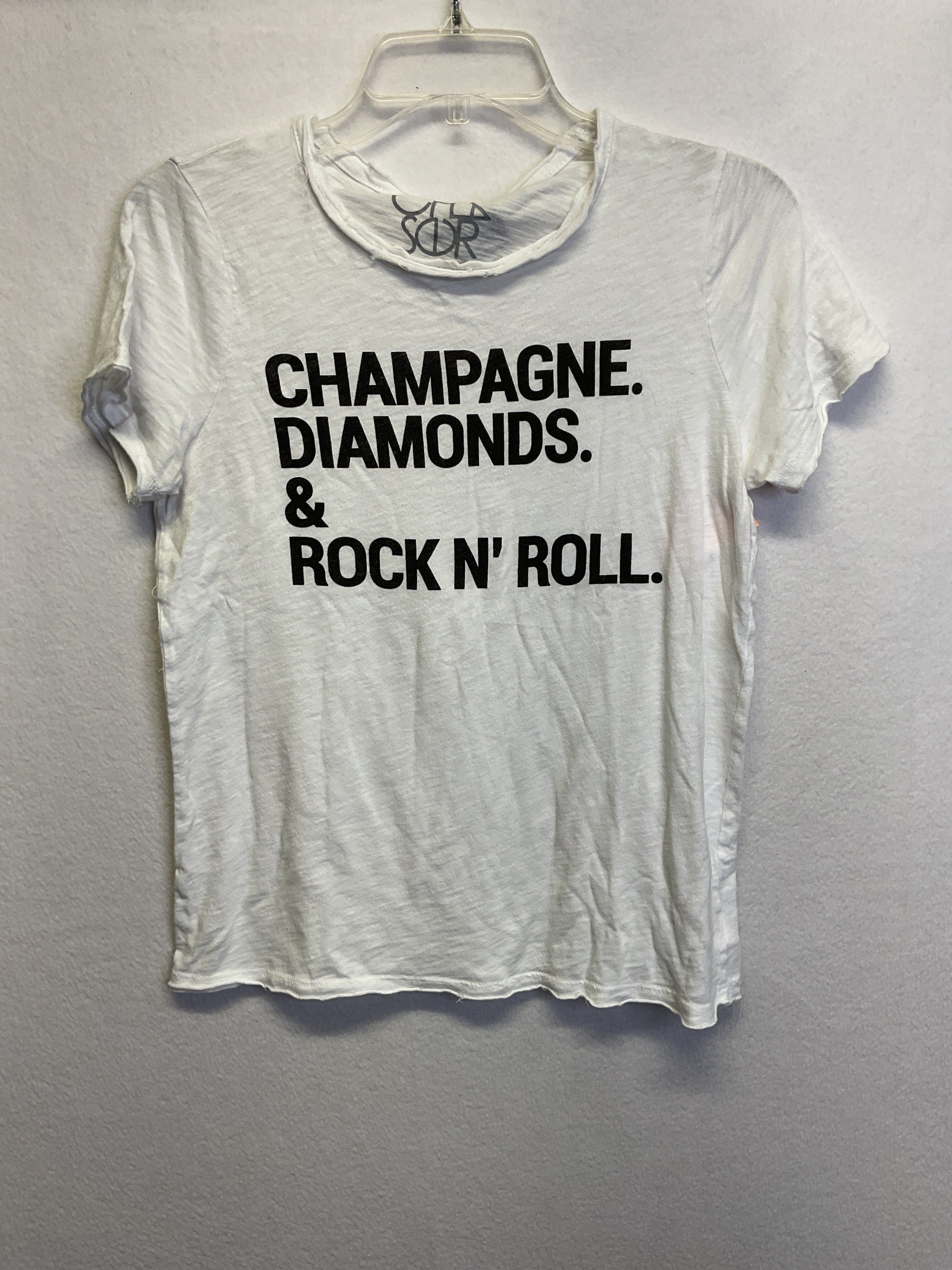Unleash your inner style icon with the Top SS by Chaser in White, Size: S. Crafted for the trendsetter in you, this top exudes confidence and sophistication effortlessly. Grab yours now!
