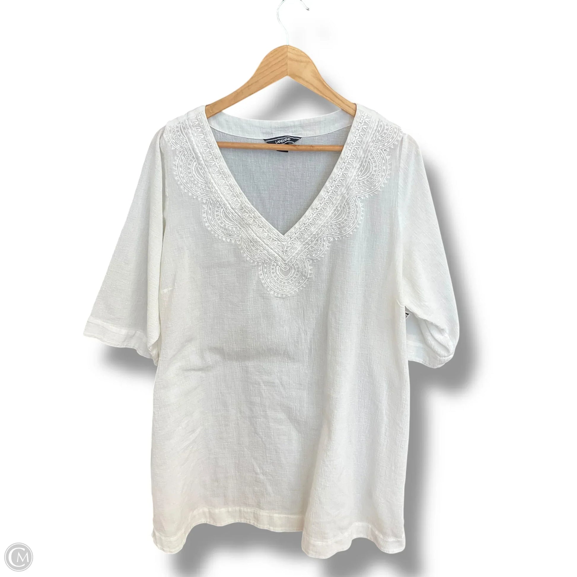Tunic 3/4 Sleeve By Lands End In Cream, Size: 2x